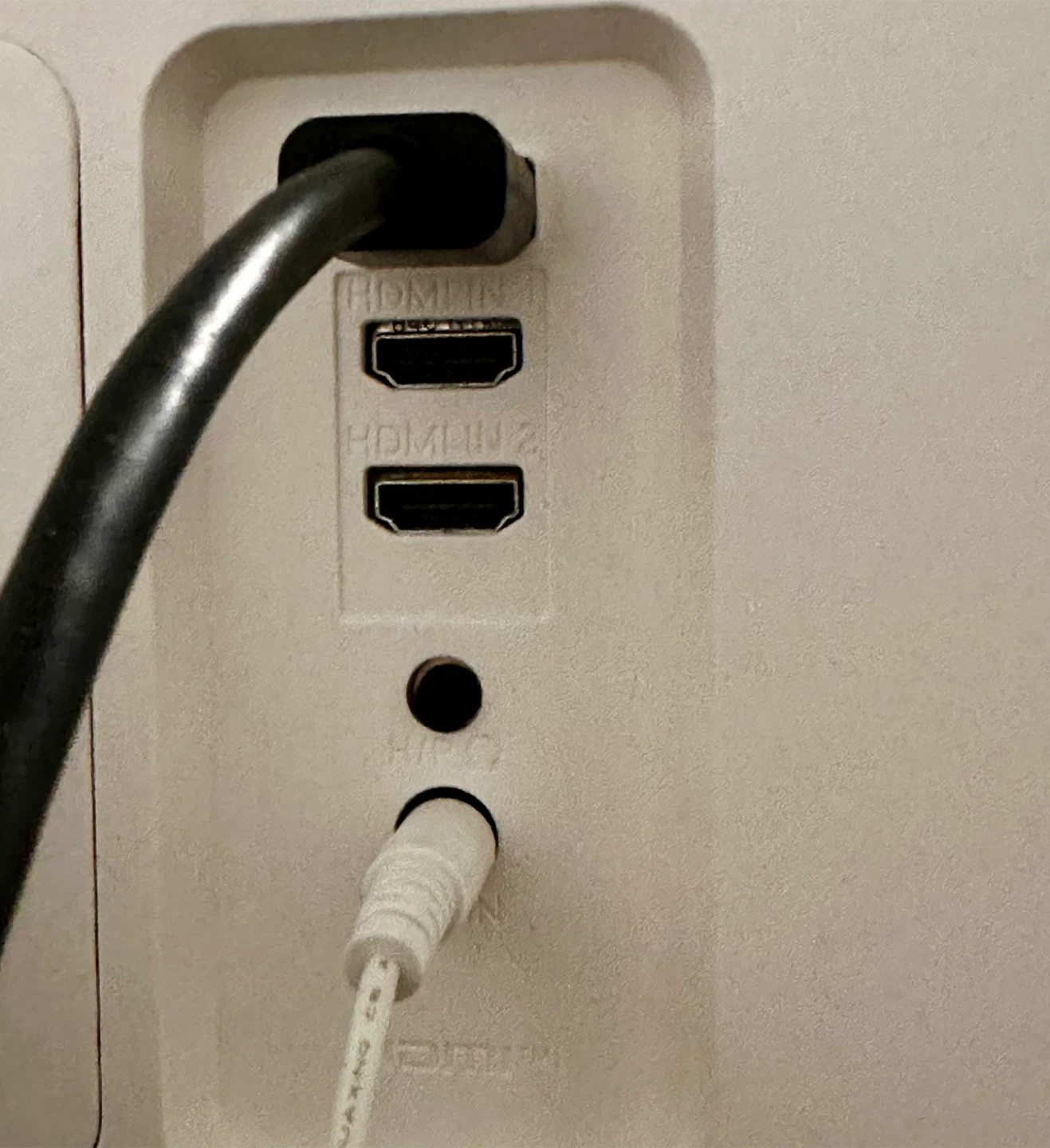 Almost new. Barely use it. Power time is less than 2300 hours. Adjustable height. Comes with original power and HDMI cable. I can throw a new 8K HDMI cable and 12 in 1 multifunctional hub for free.