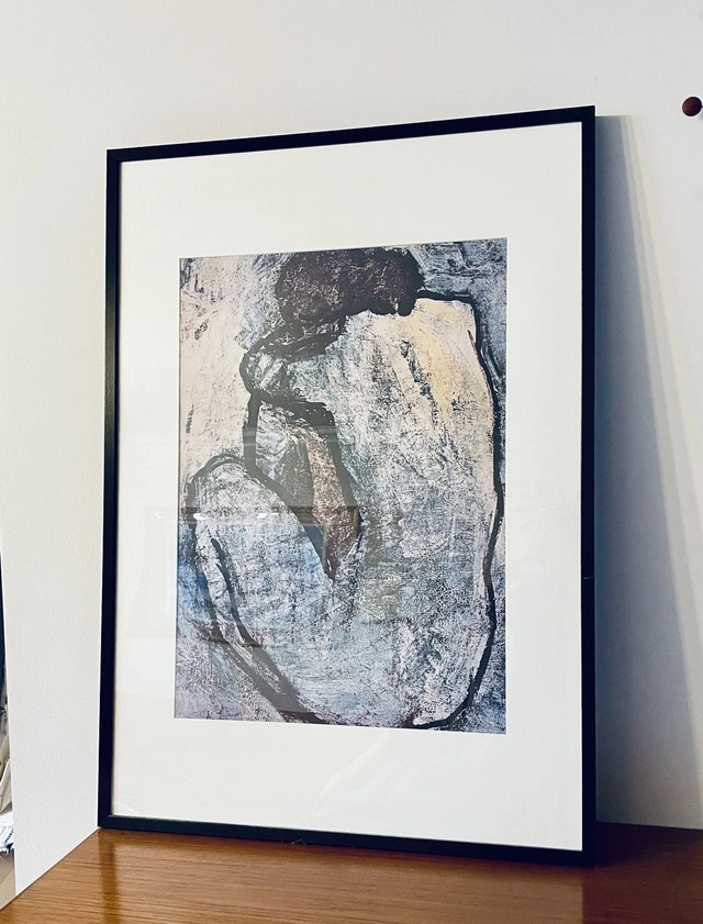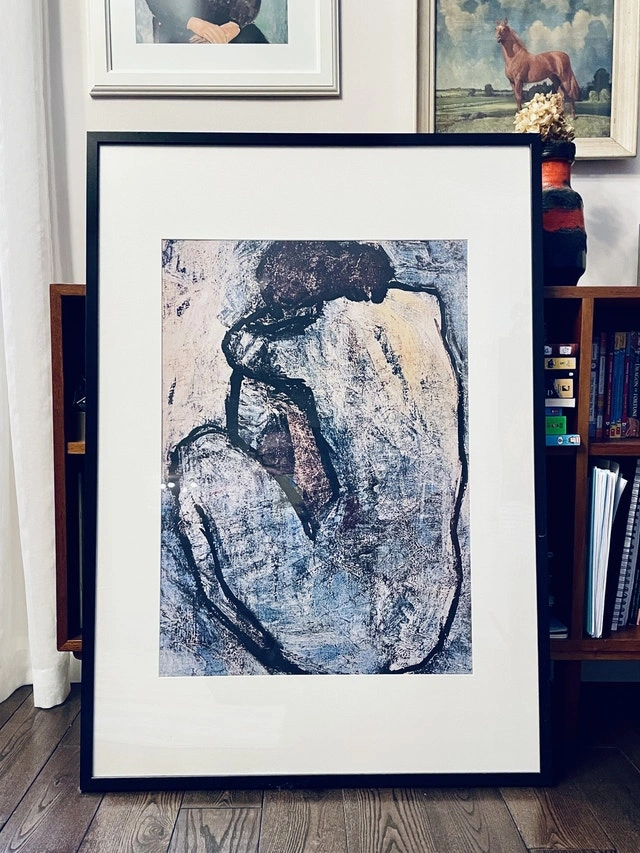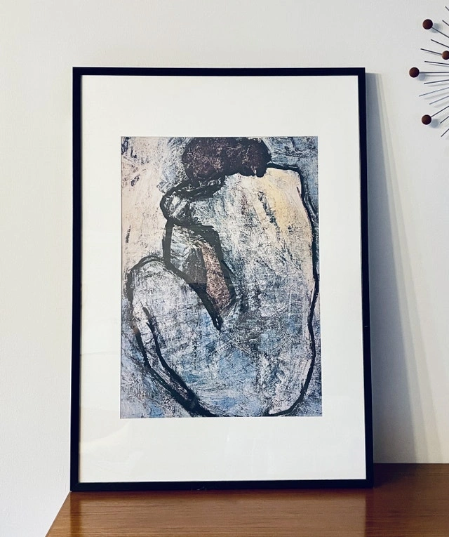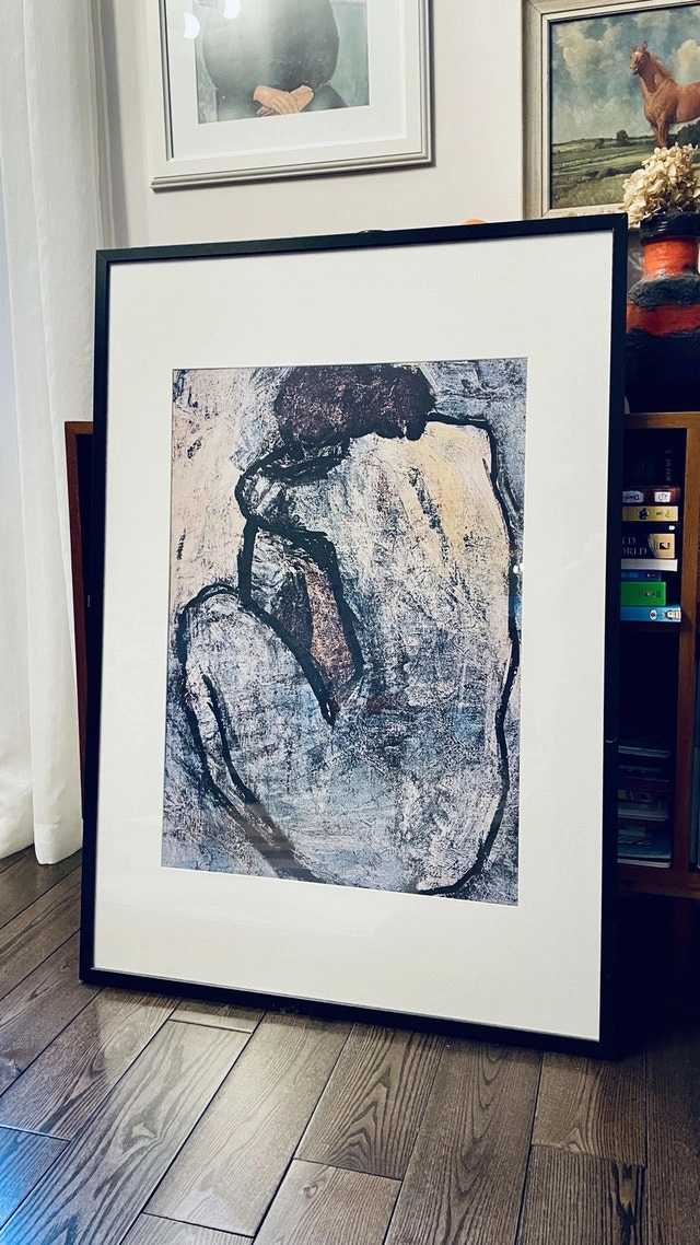 One of the famous Blue Period paintings. Artist: Pablo Picasso (Spain) Title: “Blue Nude” (1902) Frame size: 70cm x 100cm Pick up only