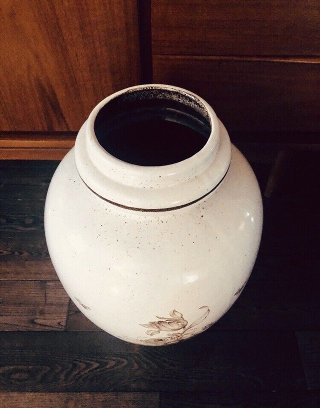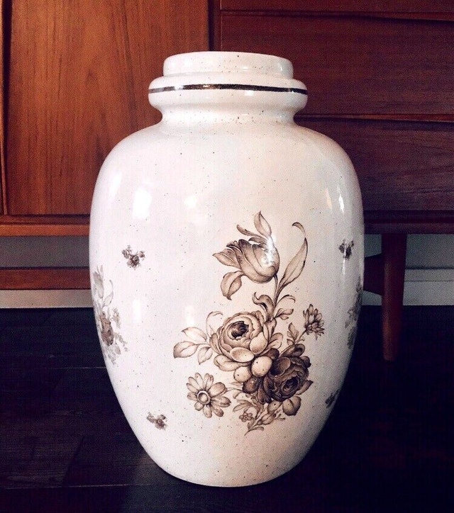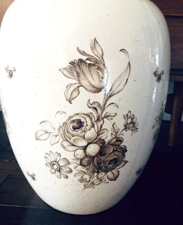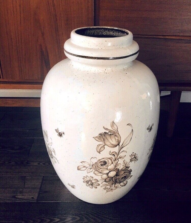 Rare and stunning! Large Mid Century vintage West Germany floor vase made by Scheurich Bottom emboss marking: 286-51 W.Germany Floral decoration on the body with some oriental painting flavour. Excellent condition. It stands 51cm (21") tall. Pickup only.