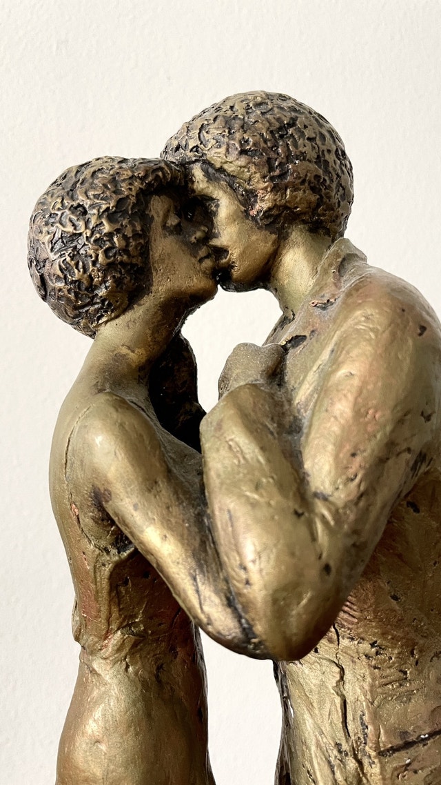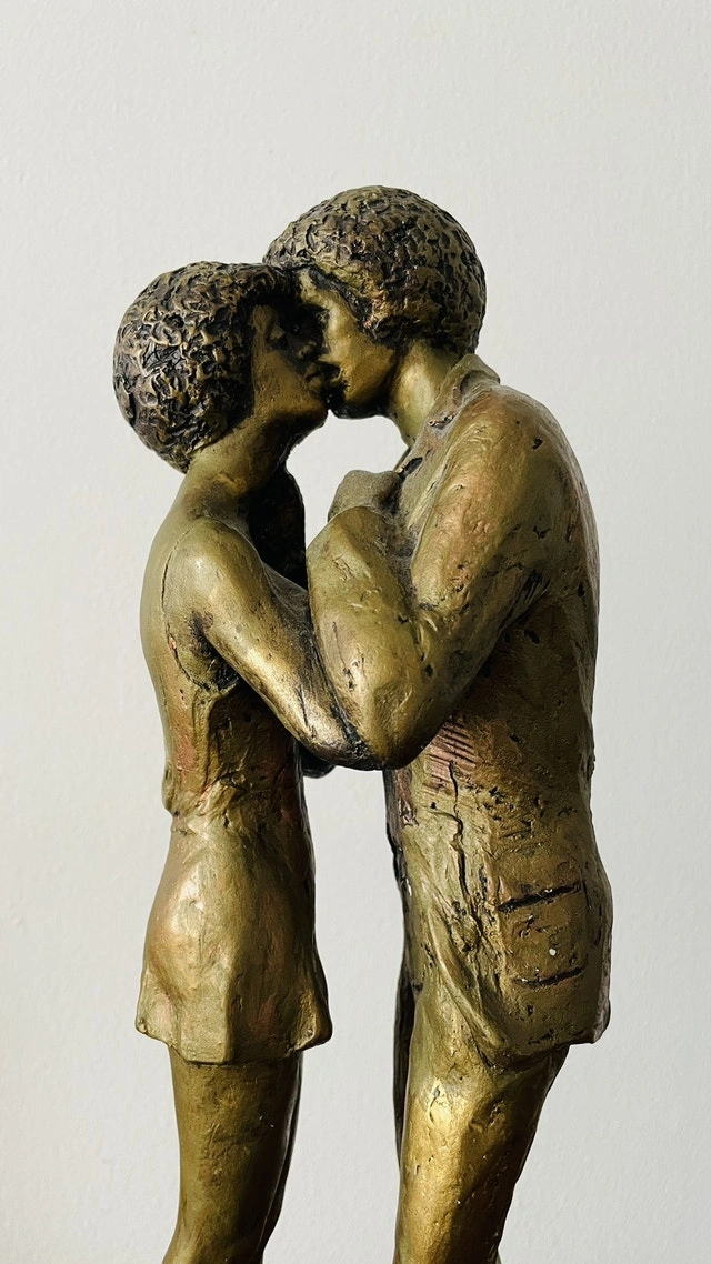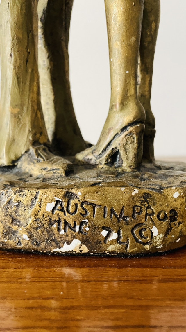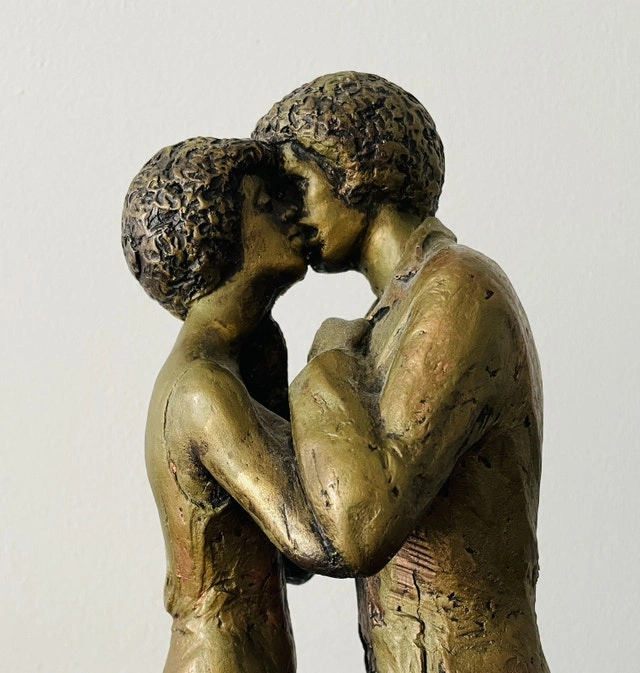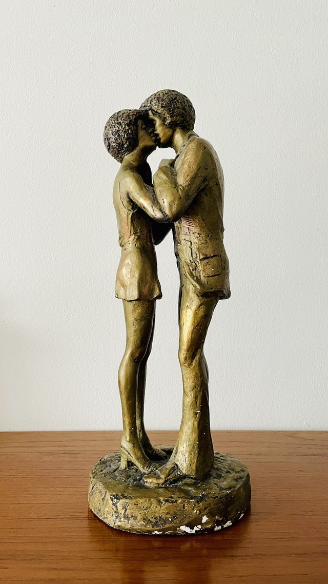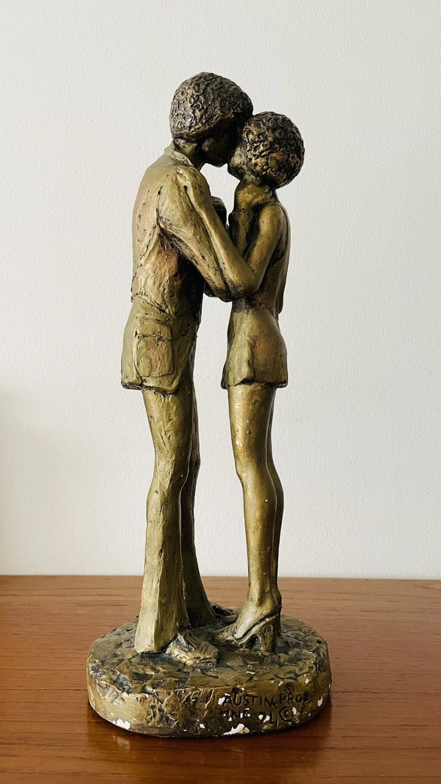 Vintage Austin Production Statue Sculpture (1971) A standing lovers kissing It stands about 15β tall.