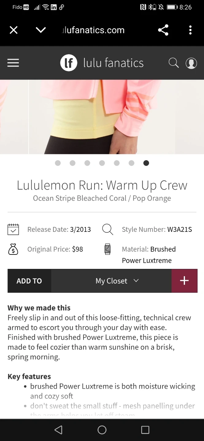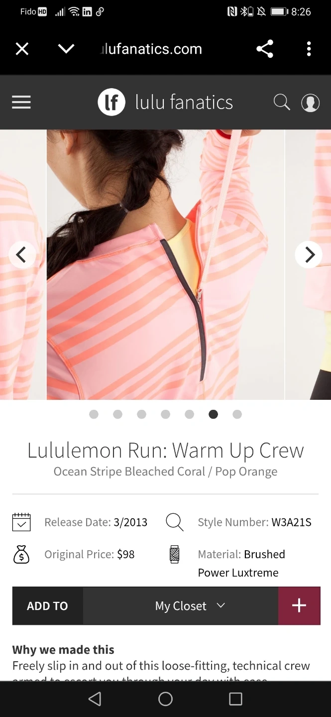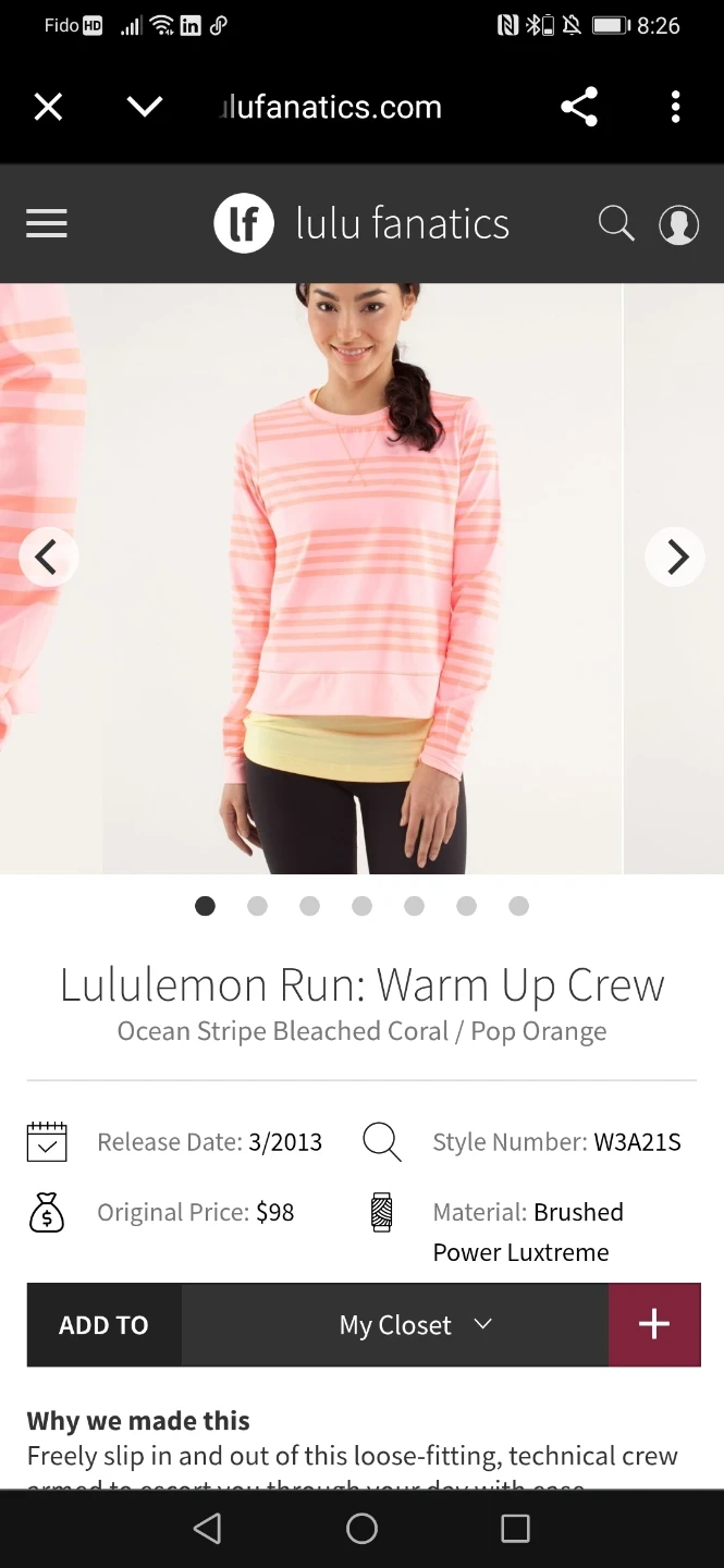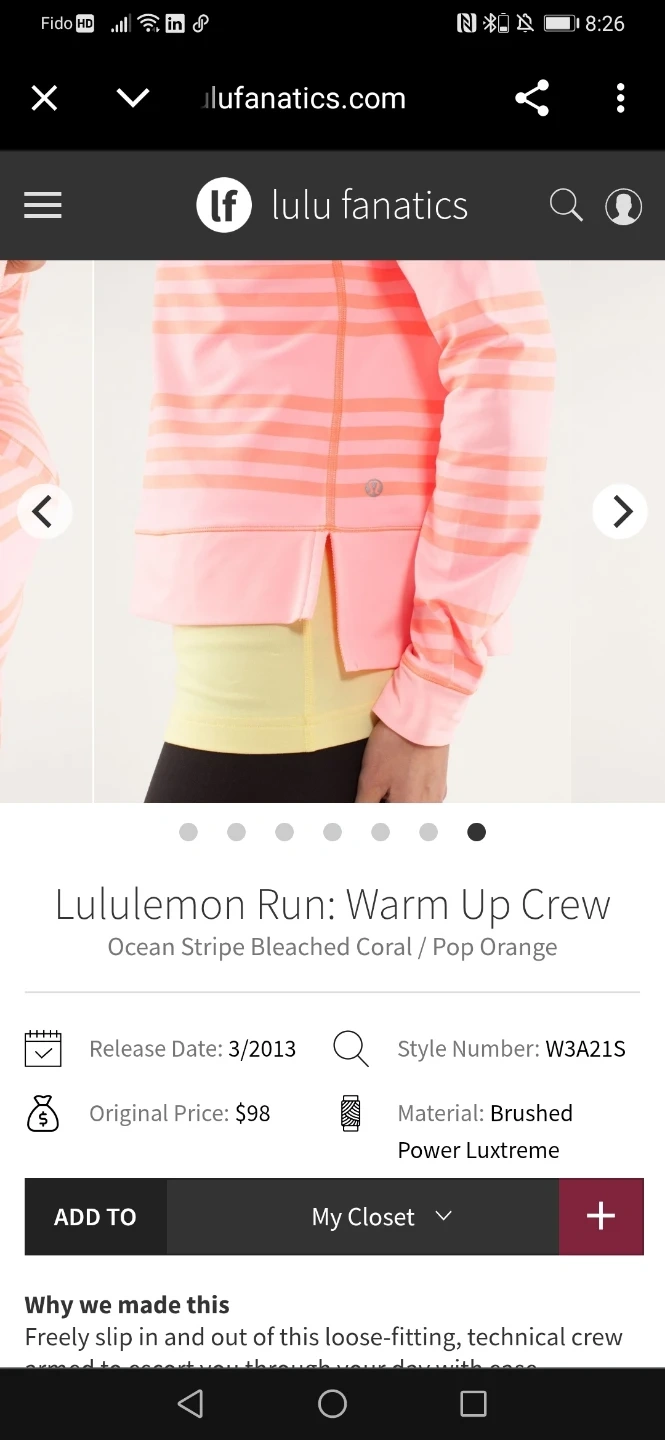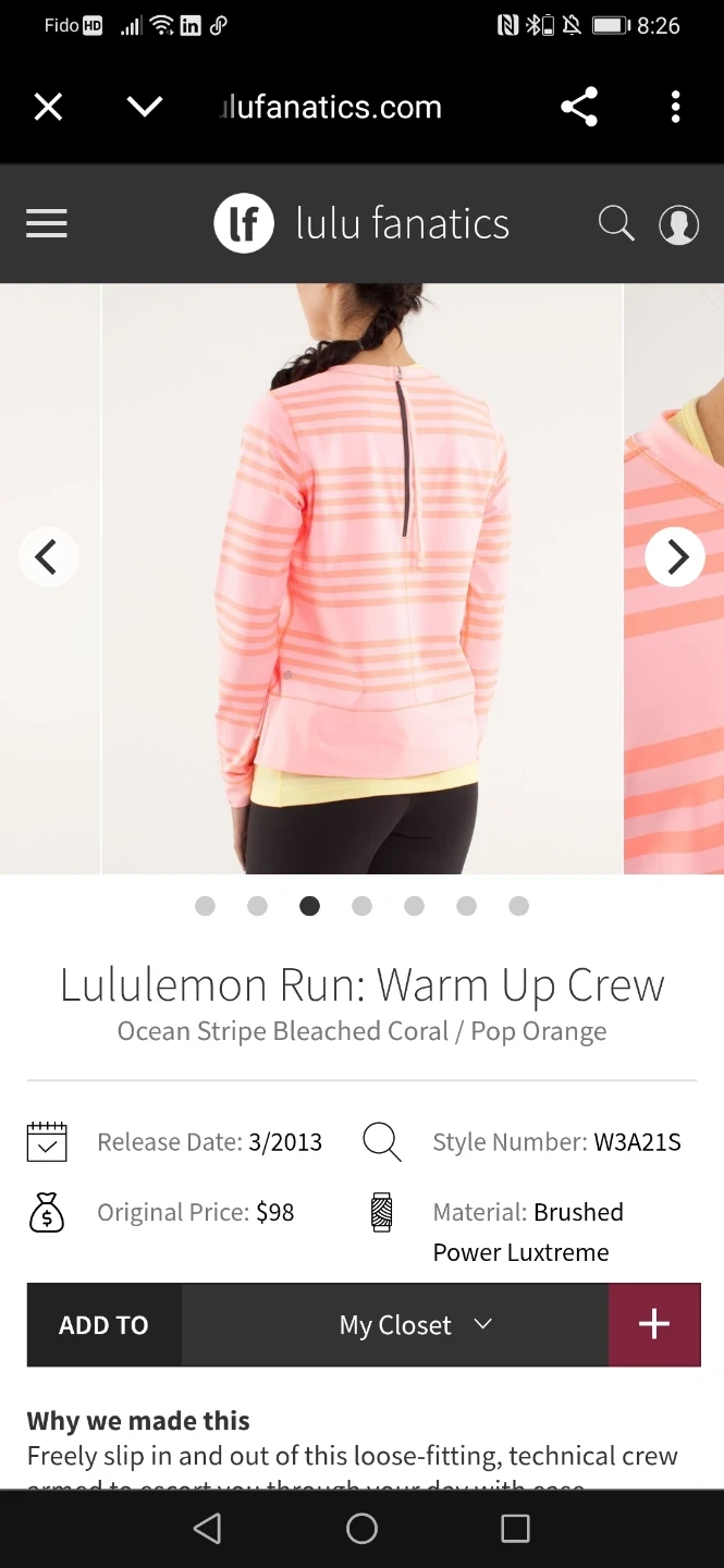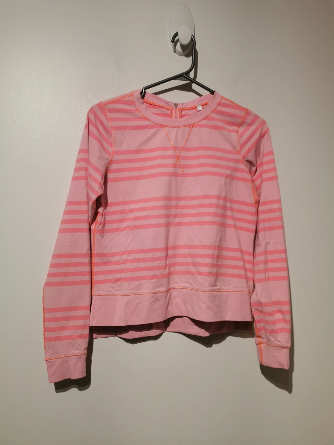 Selling a Lululemon Run: Warm Up Crew in Ocean Stripe Bleached Coral / Pop Orange. It's made of brushed Power Luxtreme material. Originally bought for $98!