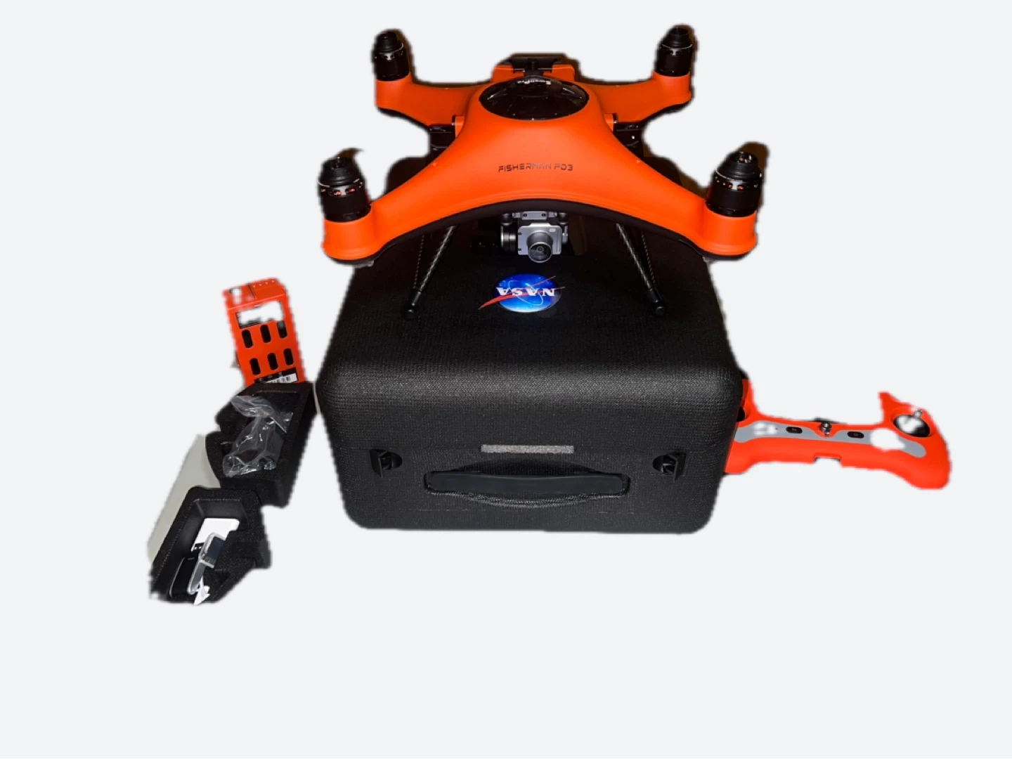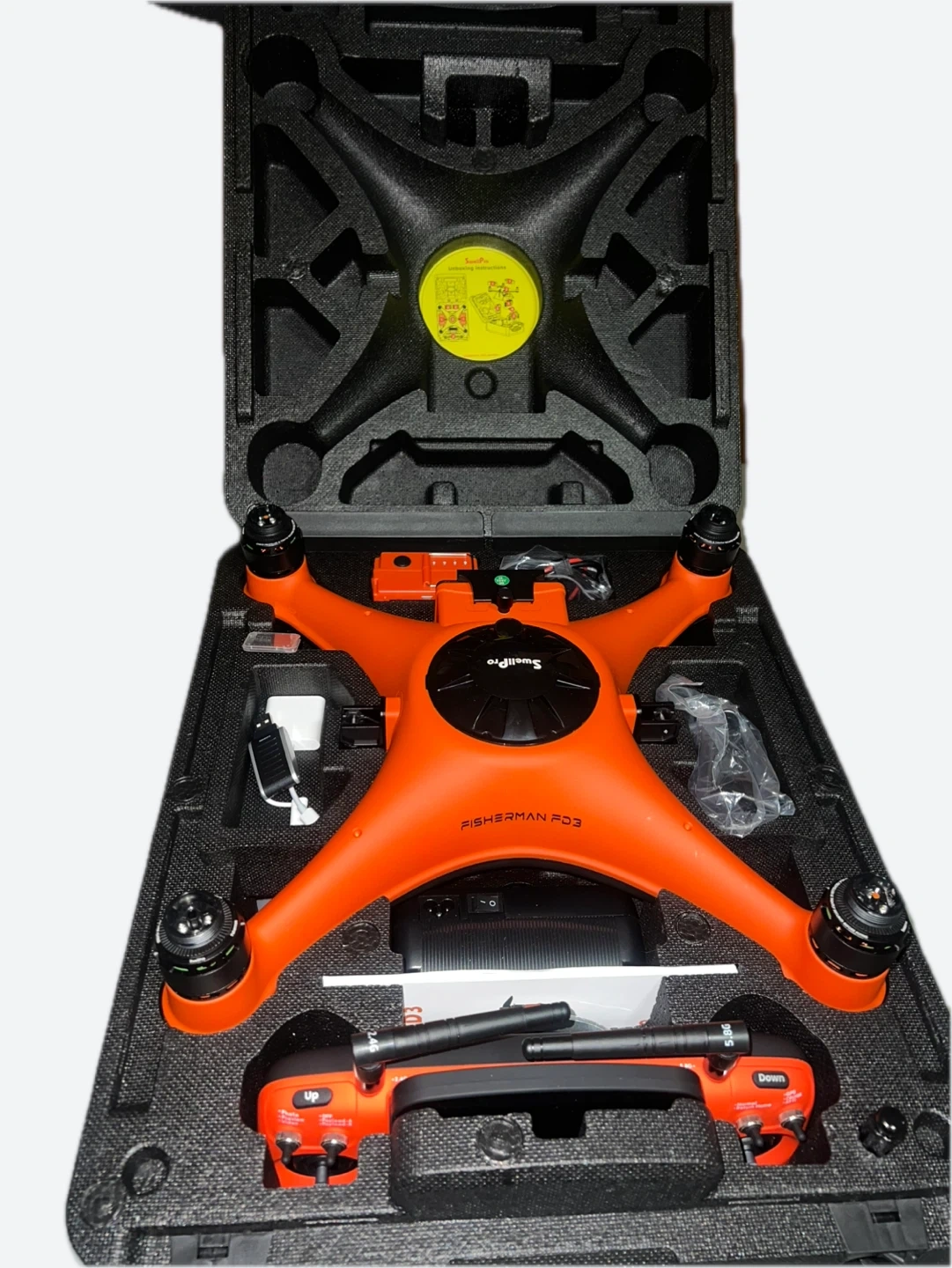Selling a SwellPro Fisherman FD3 drone in orange! It comes with its original box and all the components you see in the pictures. The drone is in great condition and ready for its next adventure. Includes AquaRID module.Used once.