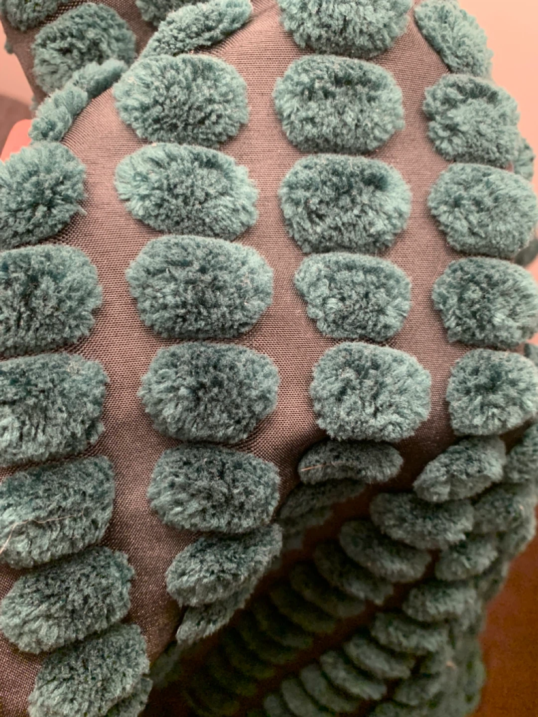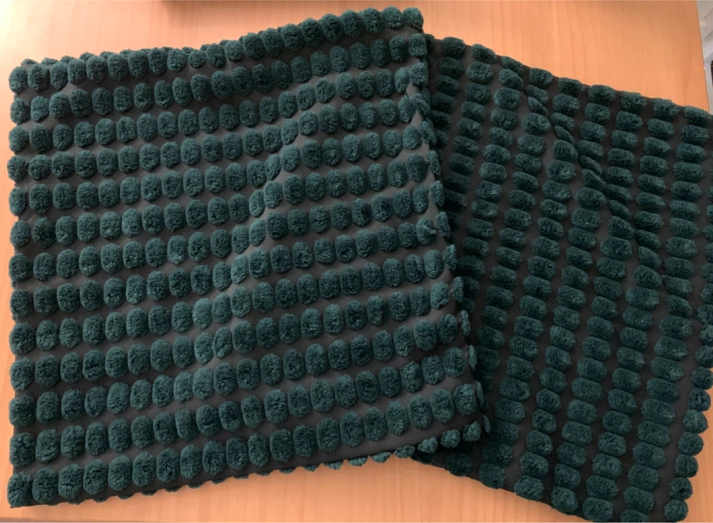 Selling a set of two green pom pom pillow covers. They're in great shape and would add a fun, textured touch to any room!
