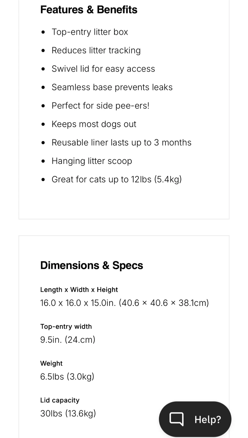 This is a really good and stylish litterbox that prevents litter spills. Easy to clean as well.
