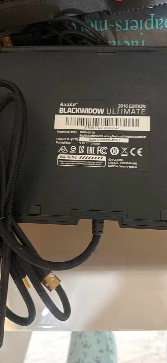 Selling a Razer BlackWidow Ultimate 2016 Edition gaming keyboard! It's in good condition and ready for a new setup. The model number is RZ03-0170.