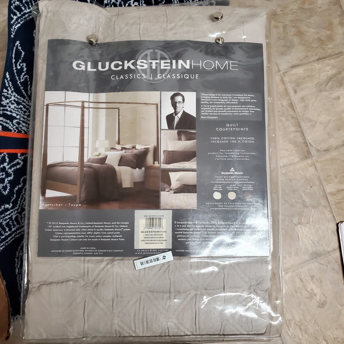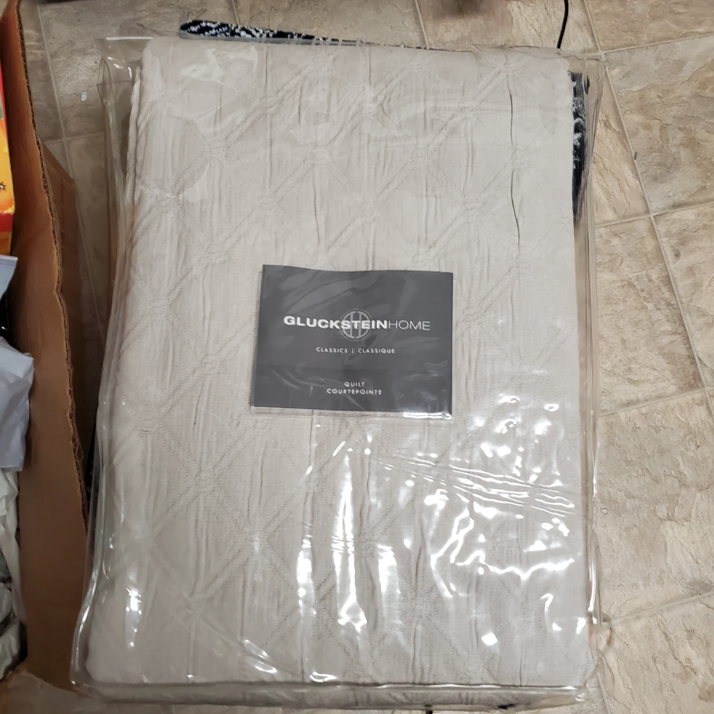 Selling a GlucksteinHome Classics Quilt in a beautiful taupe colour! It's made of 100% cotton jacquard and is still in its original packaging