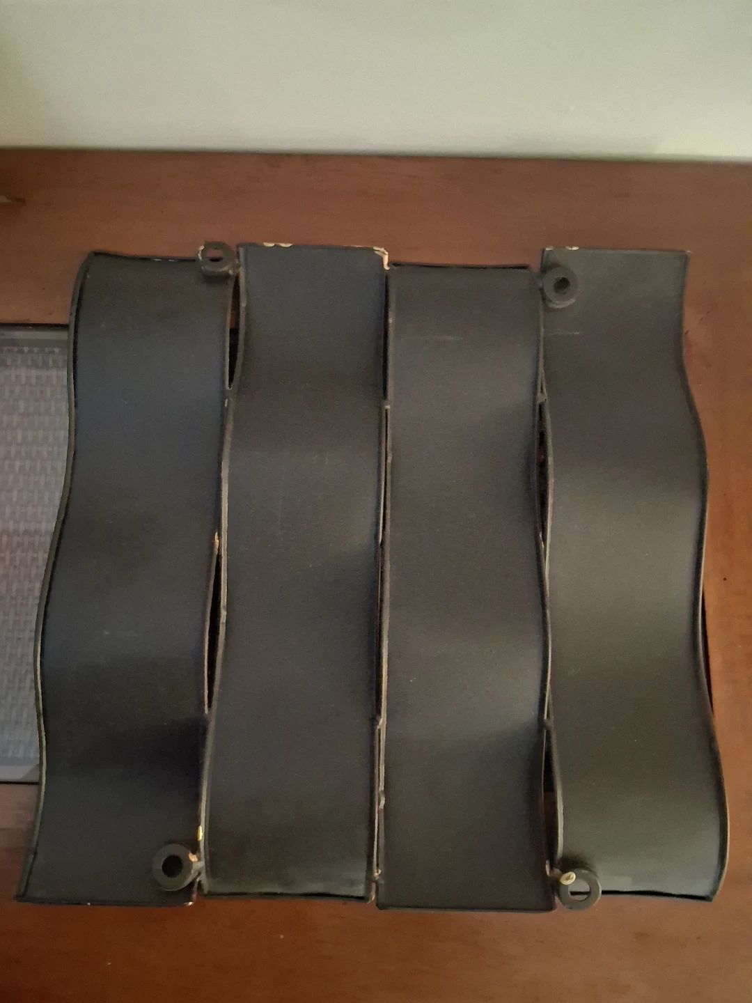 Selling a set of two metal wall decor pieces! They come in various colours: gold, black, silver, and a beige-gold mix. They have a unique wavy design that would add a touch of modern art to any room