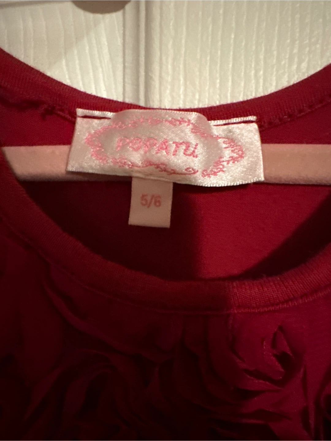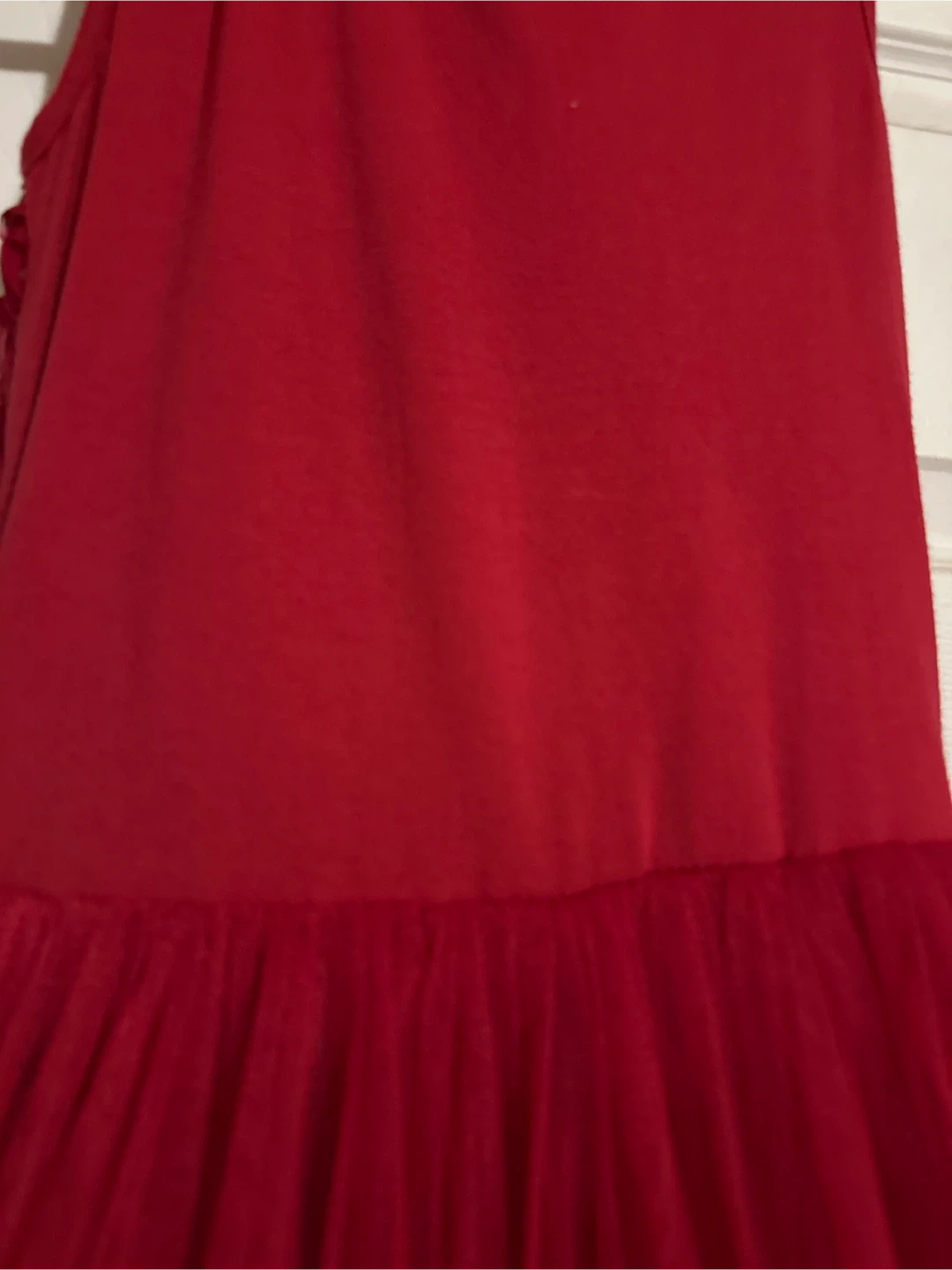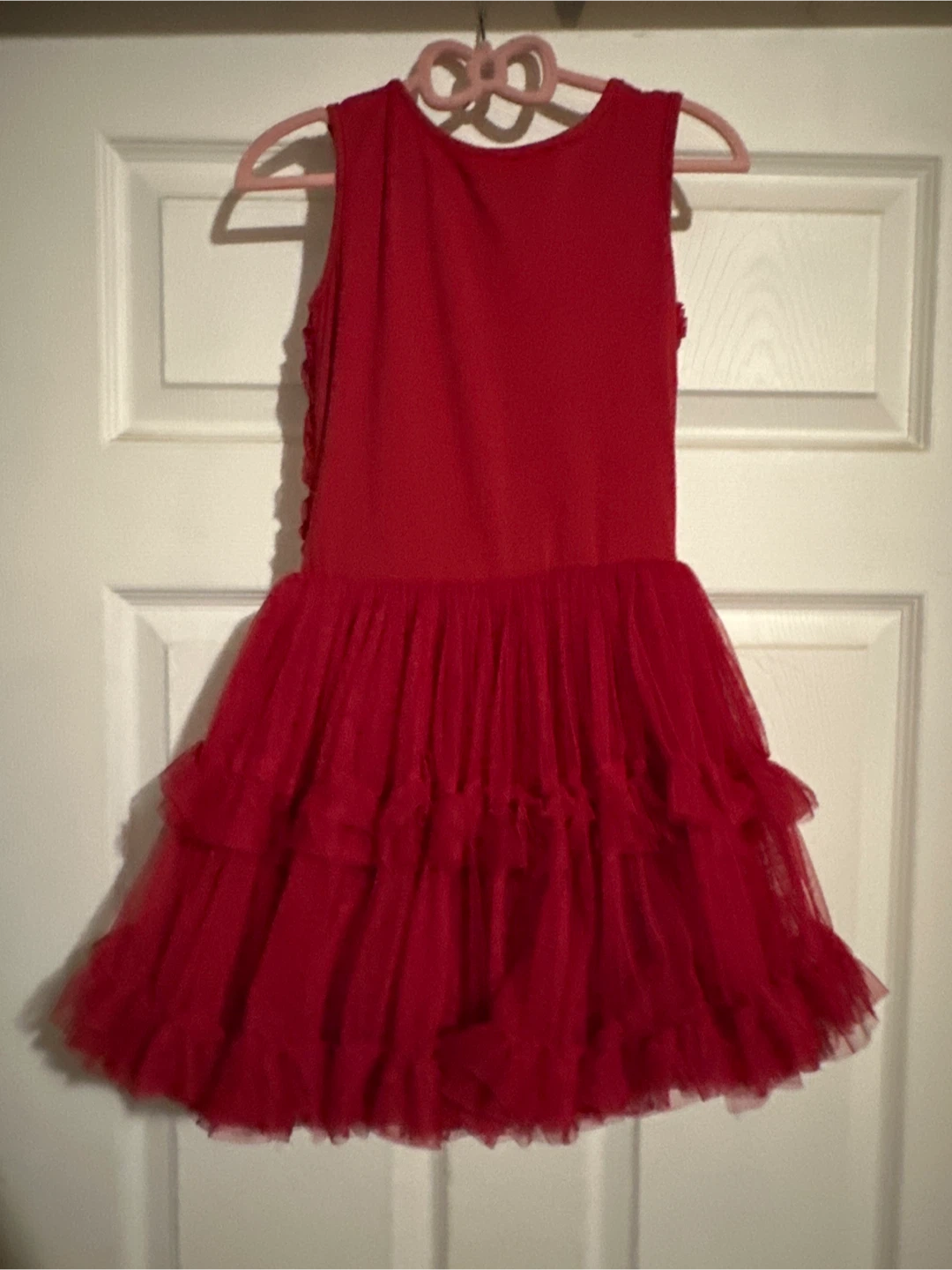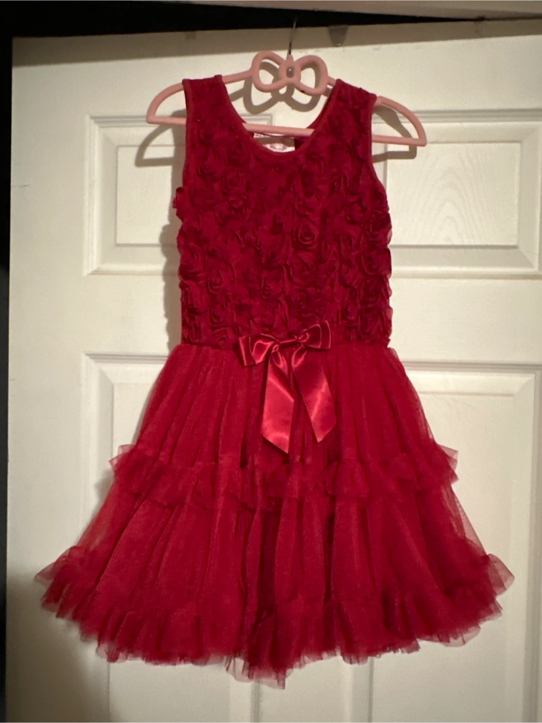 A beautiful red dress from Potatu in size 5/6! It features a lovely rose pattern on the top and a layered tulle skirt. Perfect for parties or special occasions!