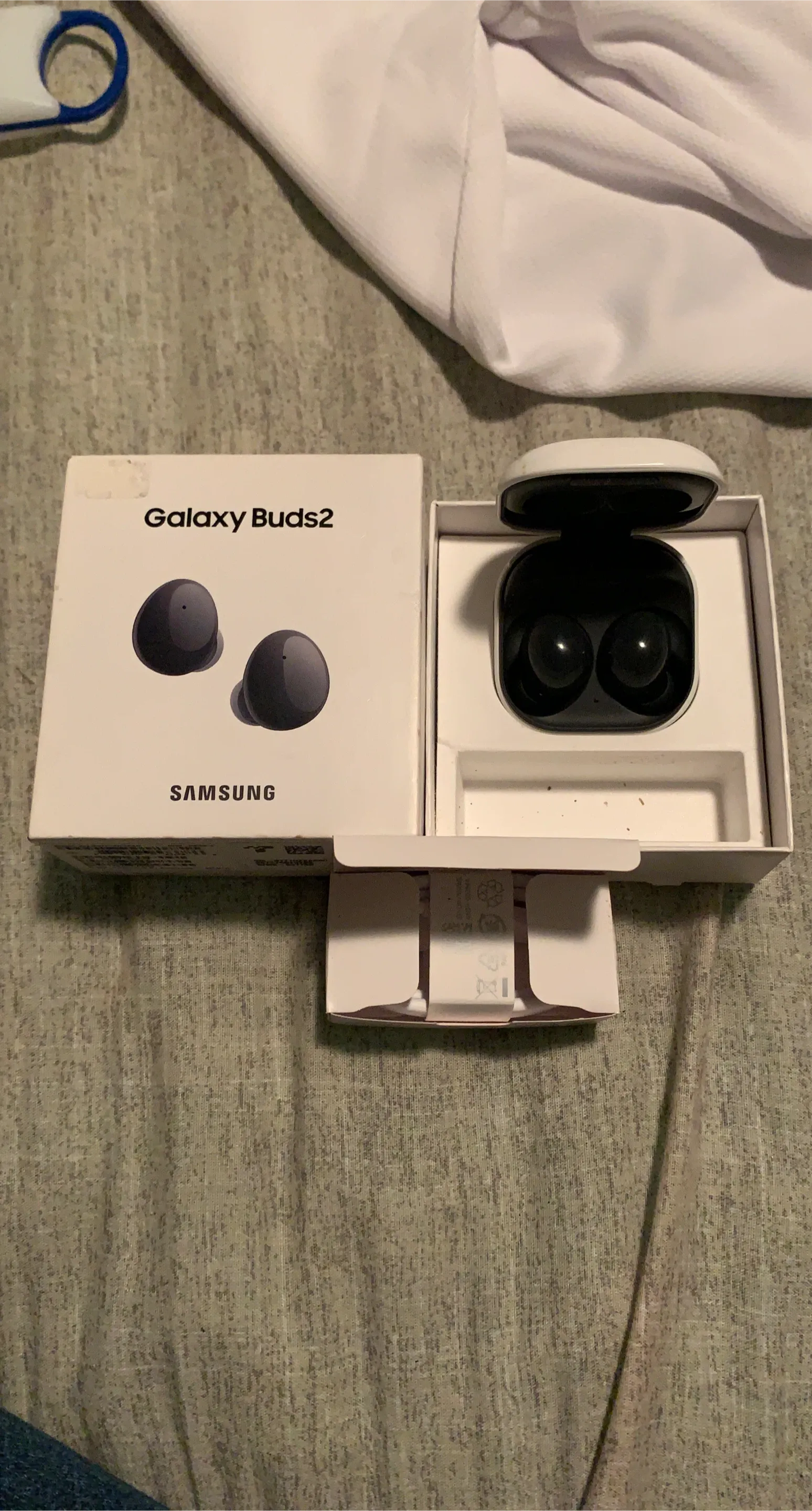 Selling a pair of Samsung Galaxy Buds2. They are new and come with the original box and included components, never been touched just the case opened for pic