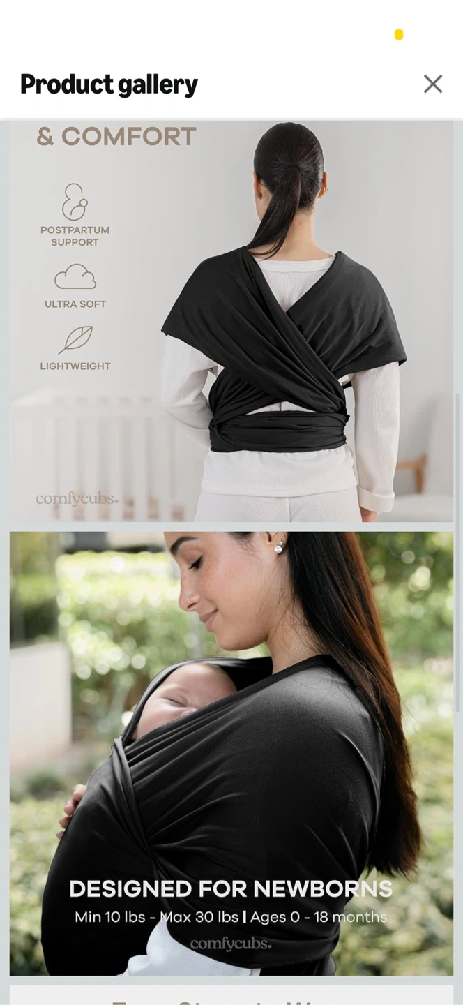 I have a Comfycubs baby wrap carrier for sale! It's black and designed for newborns, supporting weights from 10 to 30 lbs and ages 0-18 months. It's ultra soft and lightweight, providing comfort for both you and your little one. Perfect for postpartum support! Was only used few time but it’s technically new.