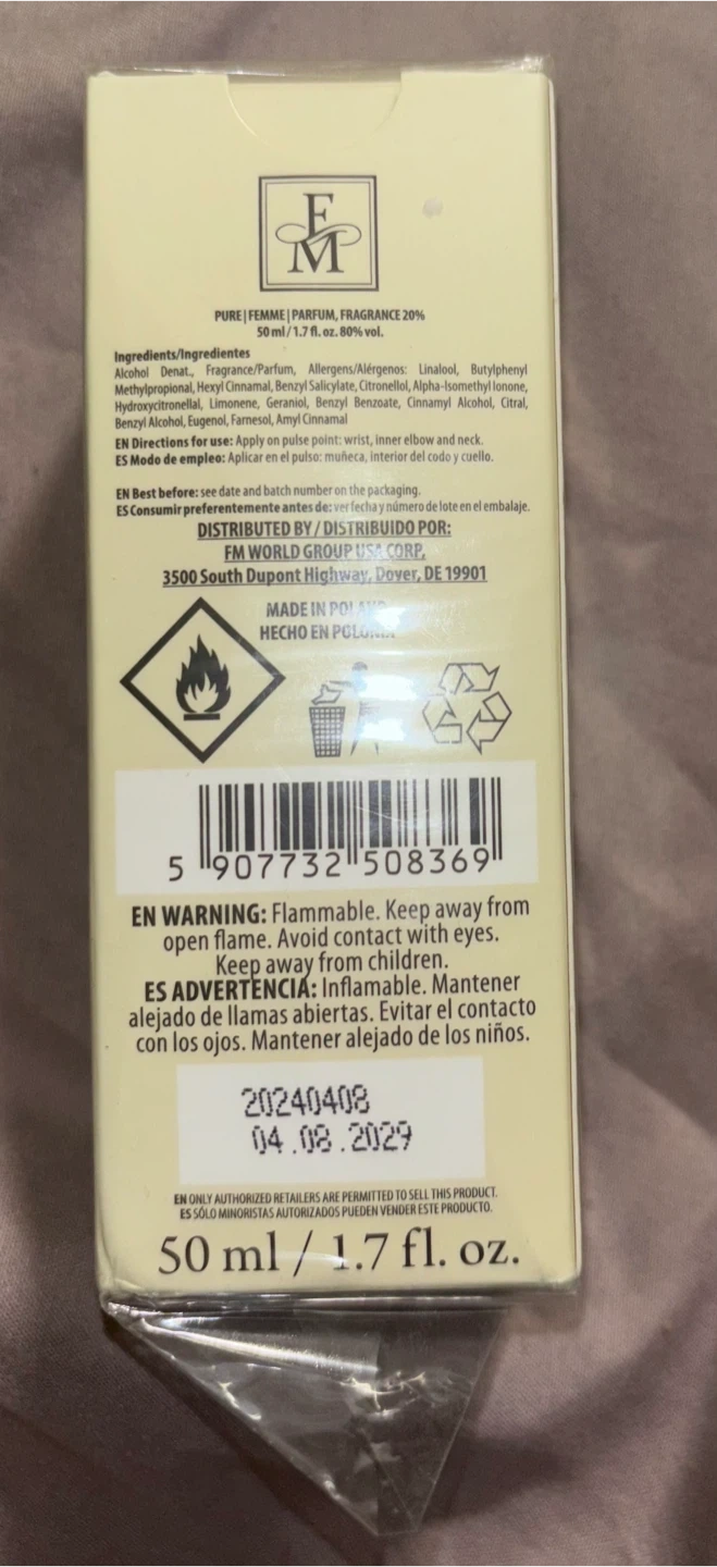 Selling a Federico Mahora Pure Femme Parfum. It contains 50ml/1.7 fl. oz. The expiration date is August 04, 2029. It is still in its original packaging
