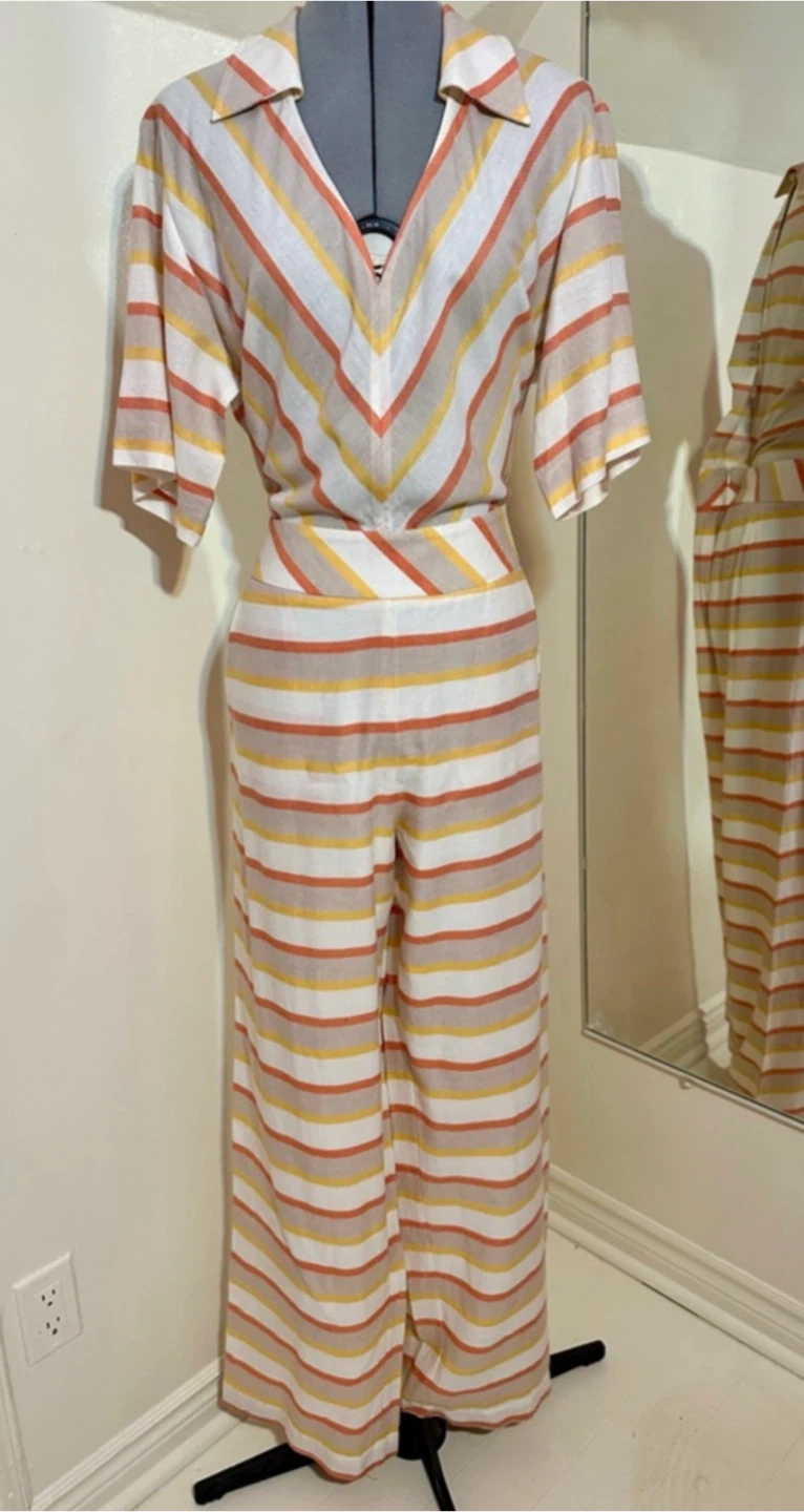 CHOLET Linen Striped Jumpsuit - Size 40