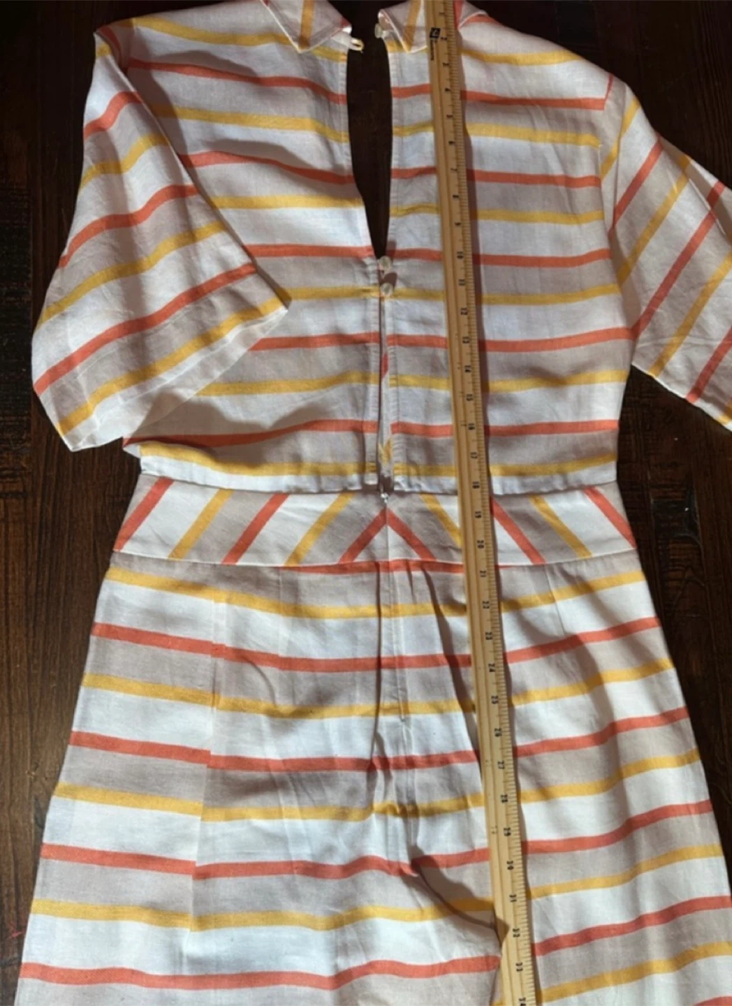 This piece has a timeless retro feel with a tailored waist and flowing legs, perfect for summer, vacations, or effortless everyday elegance. The fabric is breathable and lightweight, ideal for warm weather.