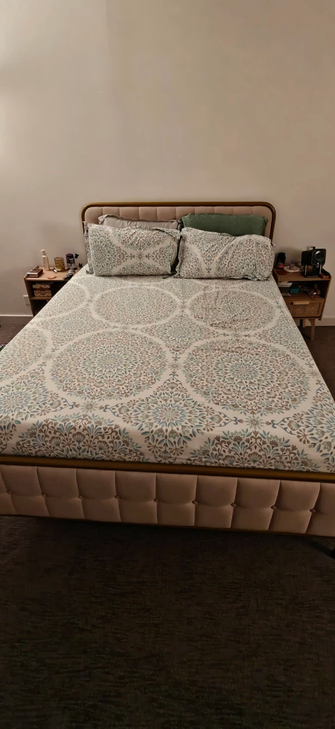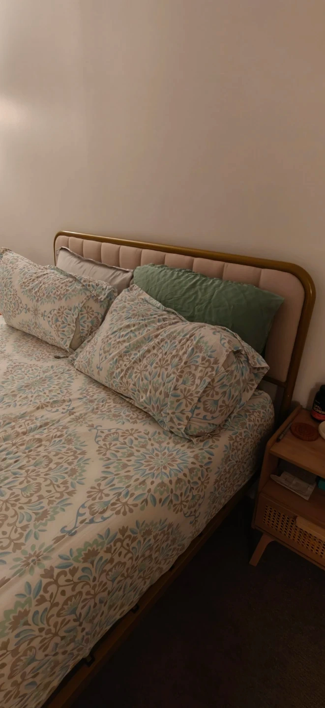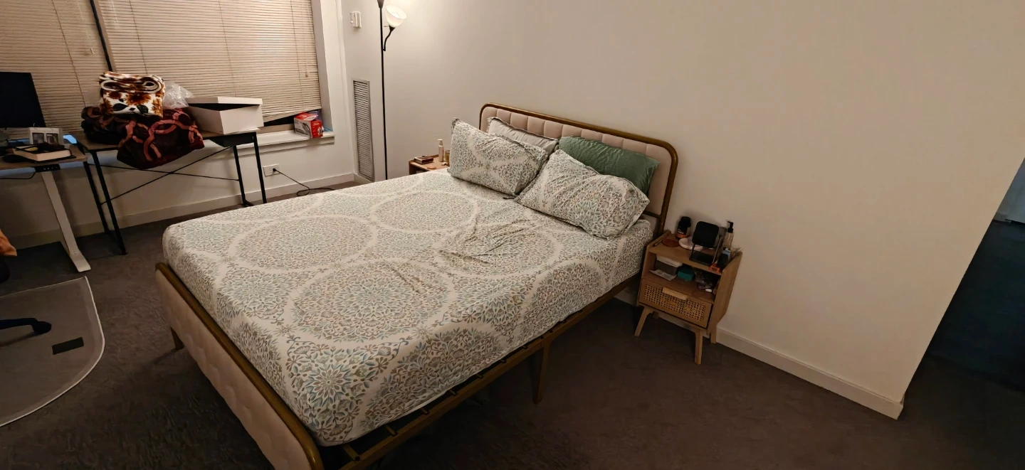 Selling a queen size bed frame. It's in great condition and has a lovely design. Perfect for adding a touch of elegance to your bedroom! https://a.co/4NTLhac Link to the actual product on Amazon, originally bought for $150, used for only 1.5 years, in extremely good condition. Buyer will have to come collect.