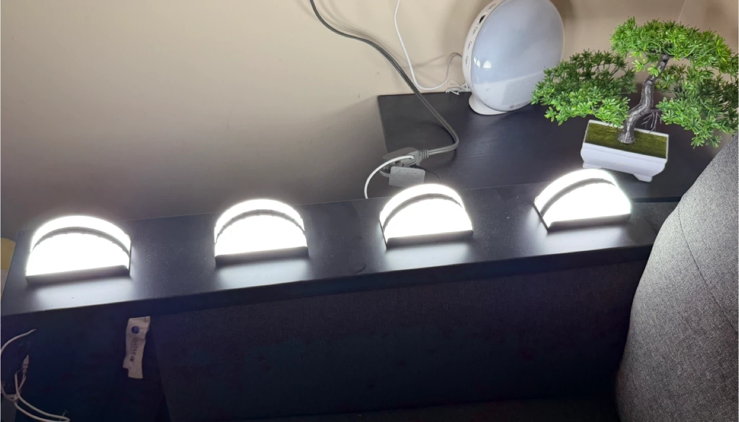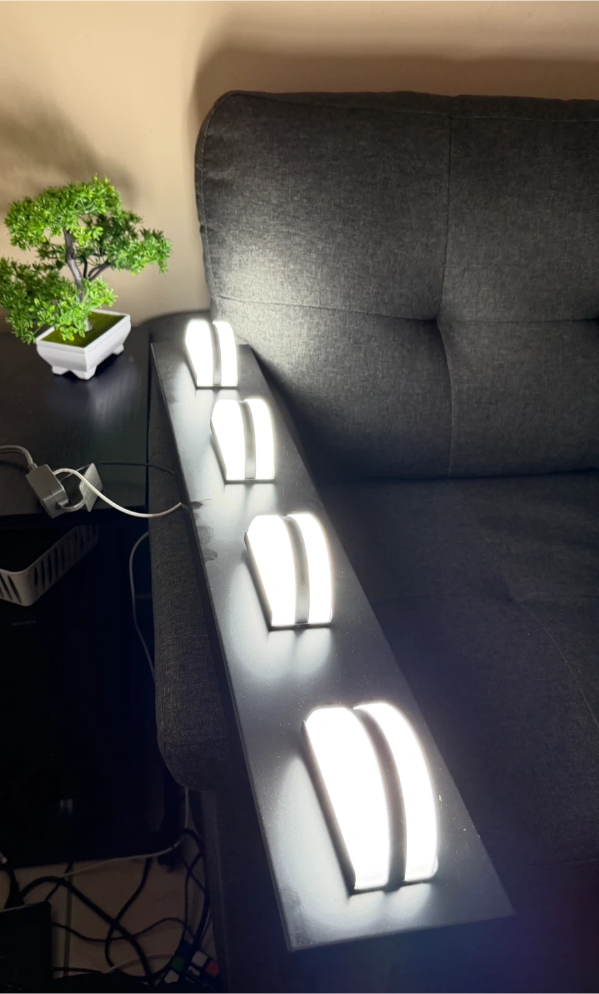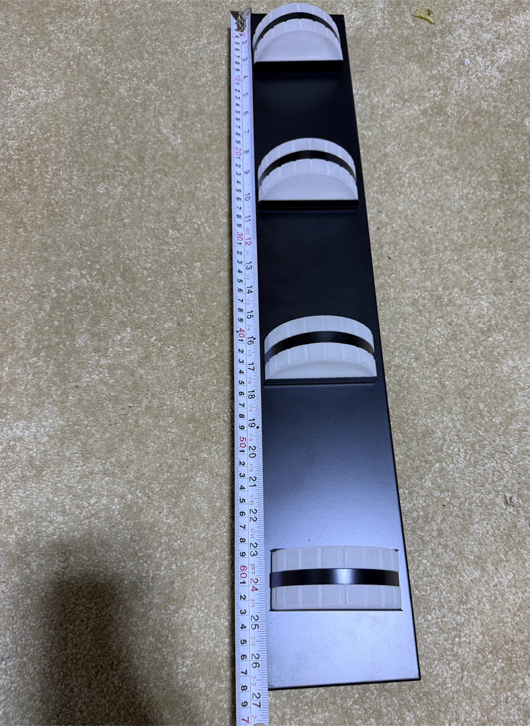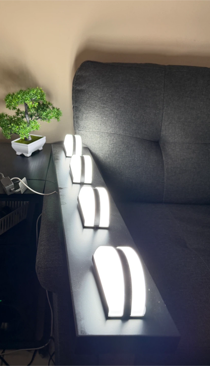 Selling a new bathroom vanity light fixture! It features a modern design with four lights and a sleek black and white finish. The acrylic lampshades provide optimal light transmittance. The lights have a 360° rotatable joint to better suit your lighting needs
