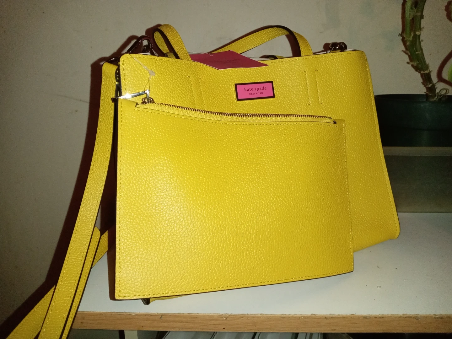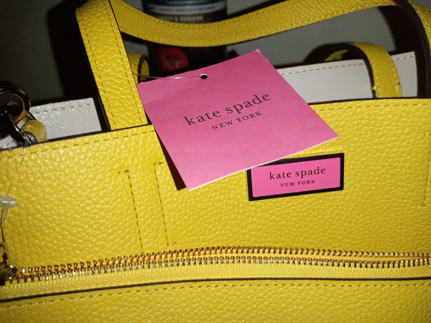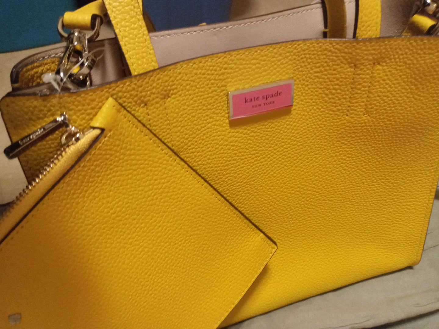 Check out this Kate Spade New York yellow tote bag! It's brand new with tags still attached. This stylish tote is perfect for carrying your essentials around town. The bright yellow colour will definitely make a statement!