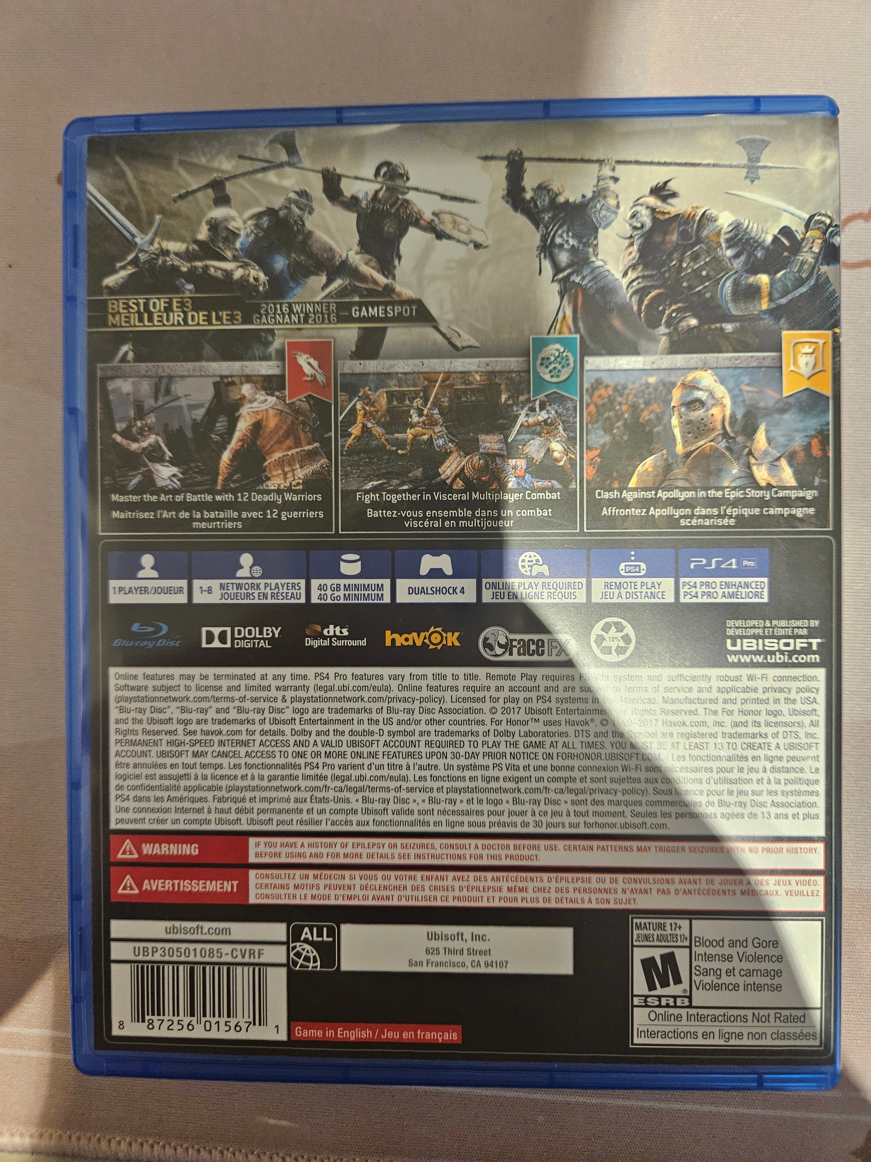 Selling For Honor on PS4! This game offers intense combat and a compelling storyline. Get ready to master the art of battle with twelve deadly warriors. Fight together in visceral multiplayer combat, or confront chaos in an epic story campaign