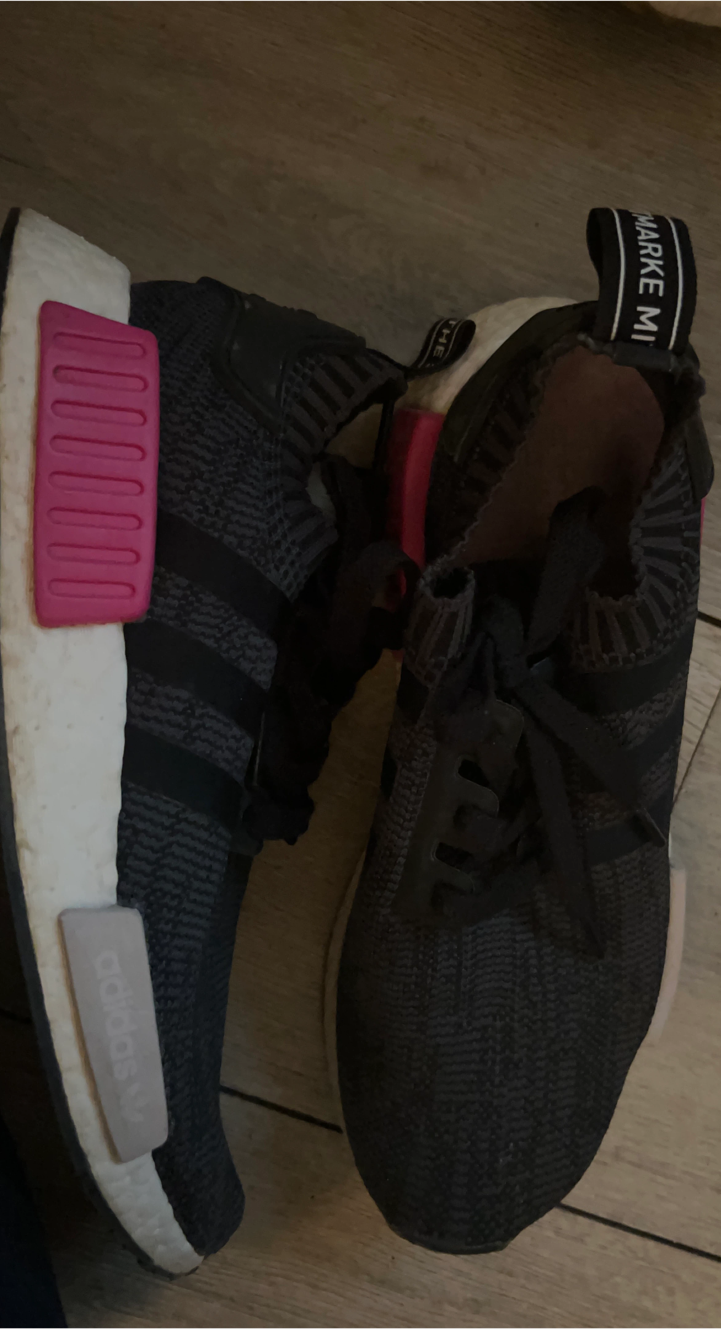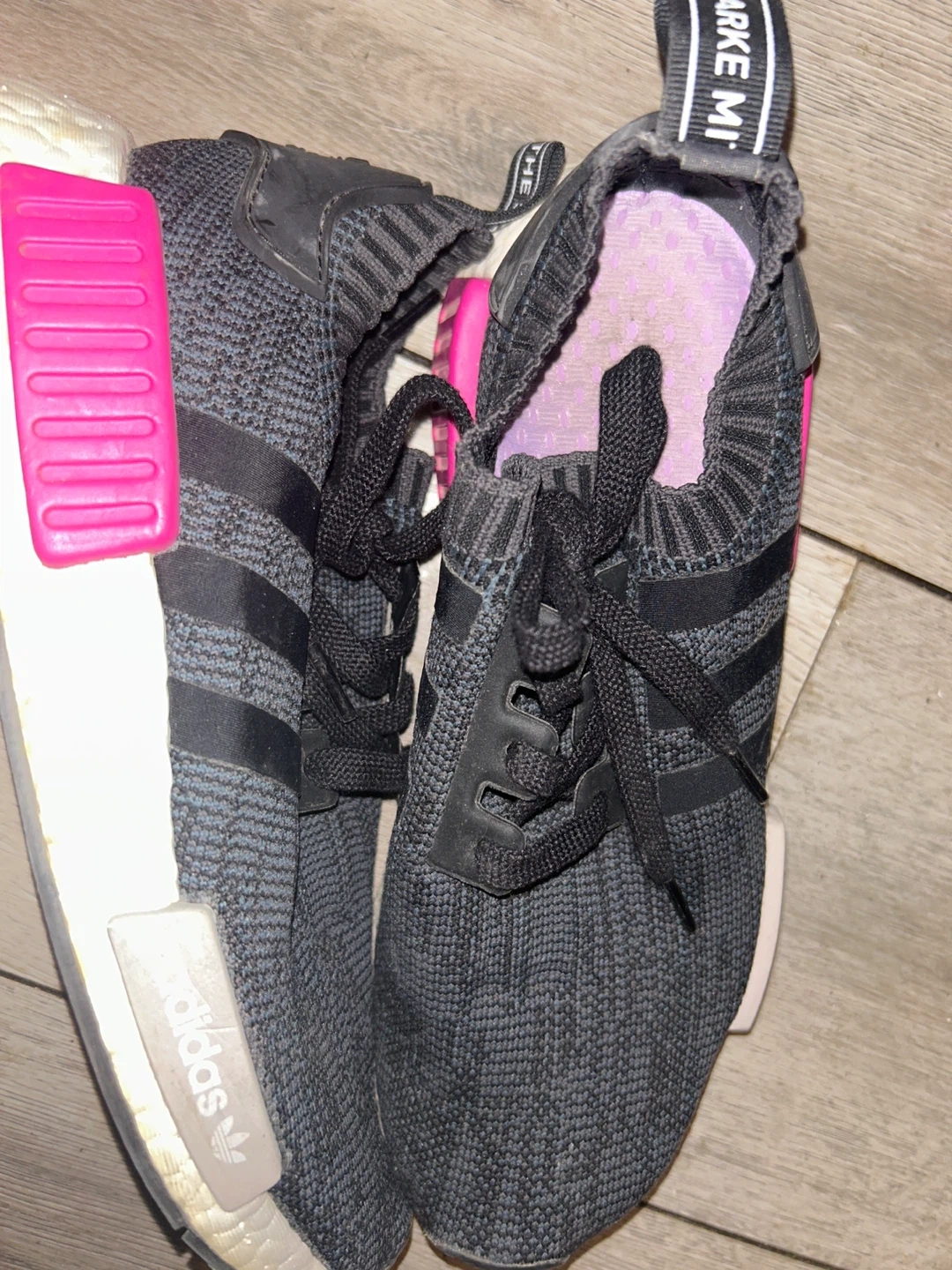 Selling a pair of Adidas NMD R1 Primeknit shoes in size 8. They are in good condition with some signs of wear. These shoes feature the comfortable Primeknit upper and Boost midsole for all-day comfort and style. Perfect for casual wear or workouts!
