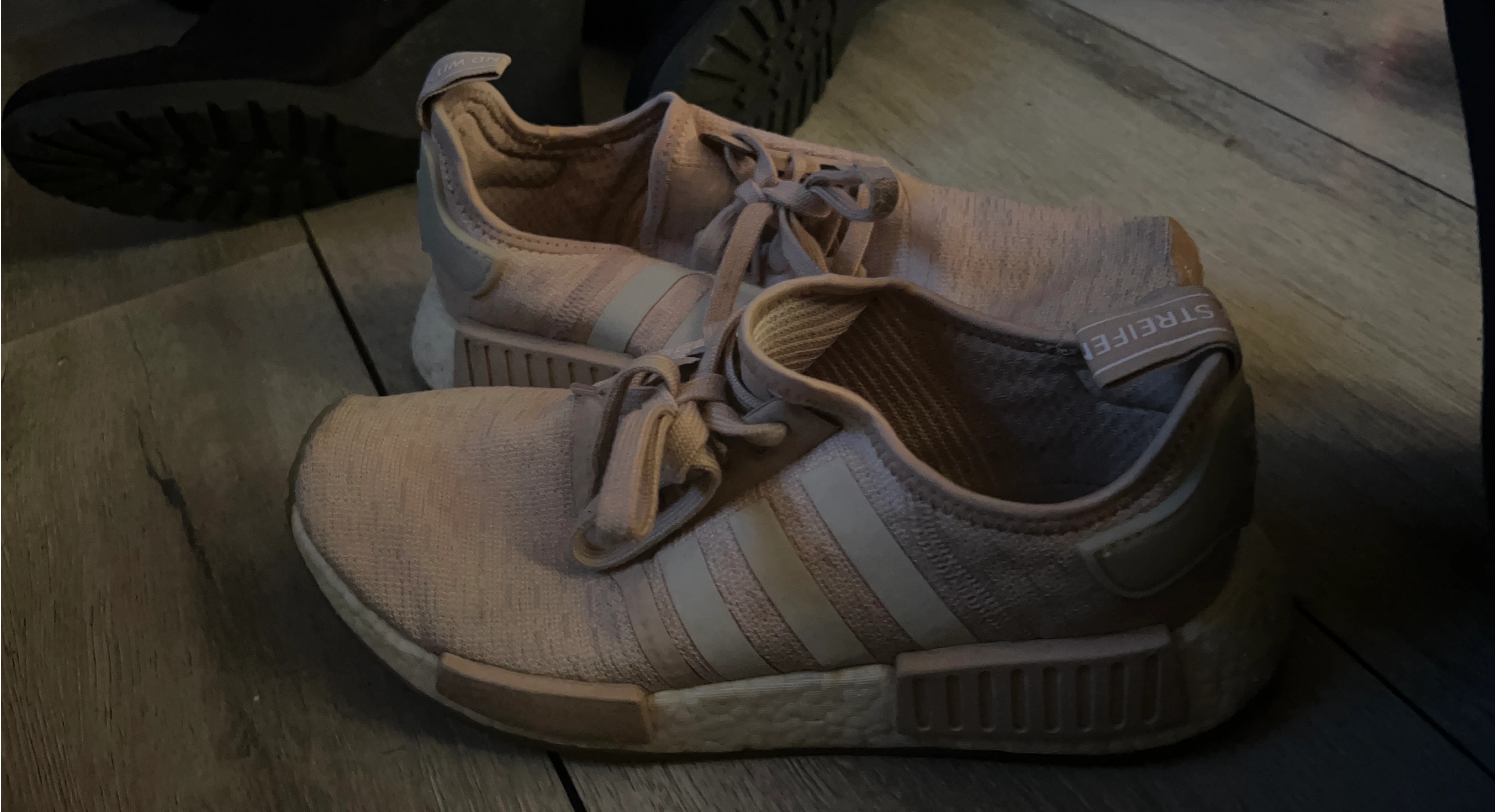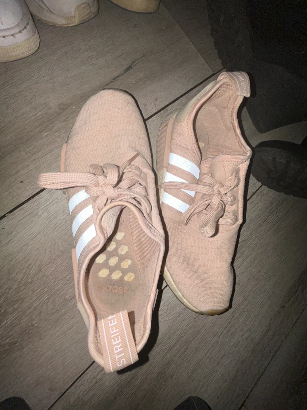 Selling a pair of Adidas NMD R1 women's shoes in pink! They're in good condition and ready for a new owner. The shoes feature the classic Adidas three-stripe design and a comfortable Boost midsole.