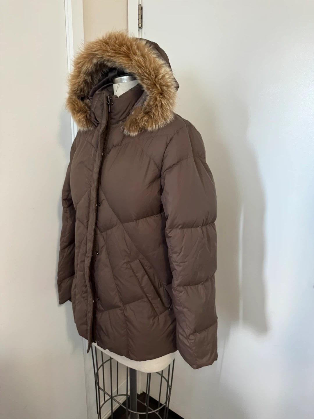 in beautiful lightly used condition just like new and the fur is so soft, it’s a lovely milk, chocolate brown colour.