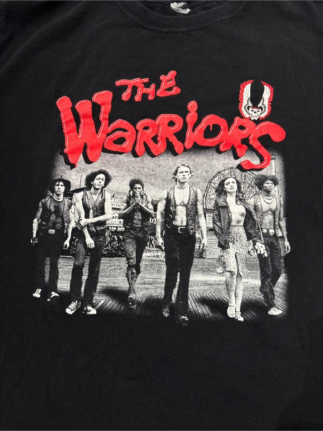 Selling a black T-shirt featuring a graphic from the movie "The Warriors"! The print is in good condition, and the shirt is perfect for any fan of the classic film