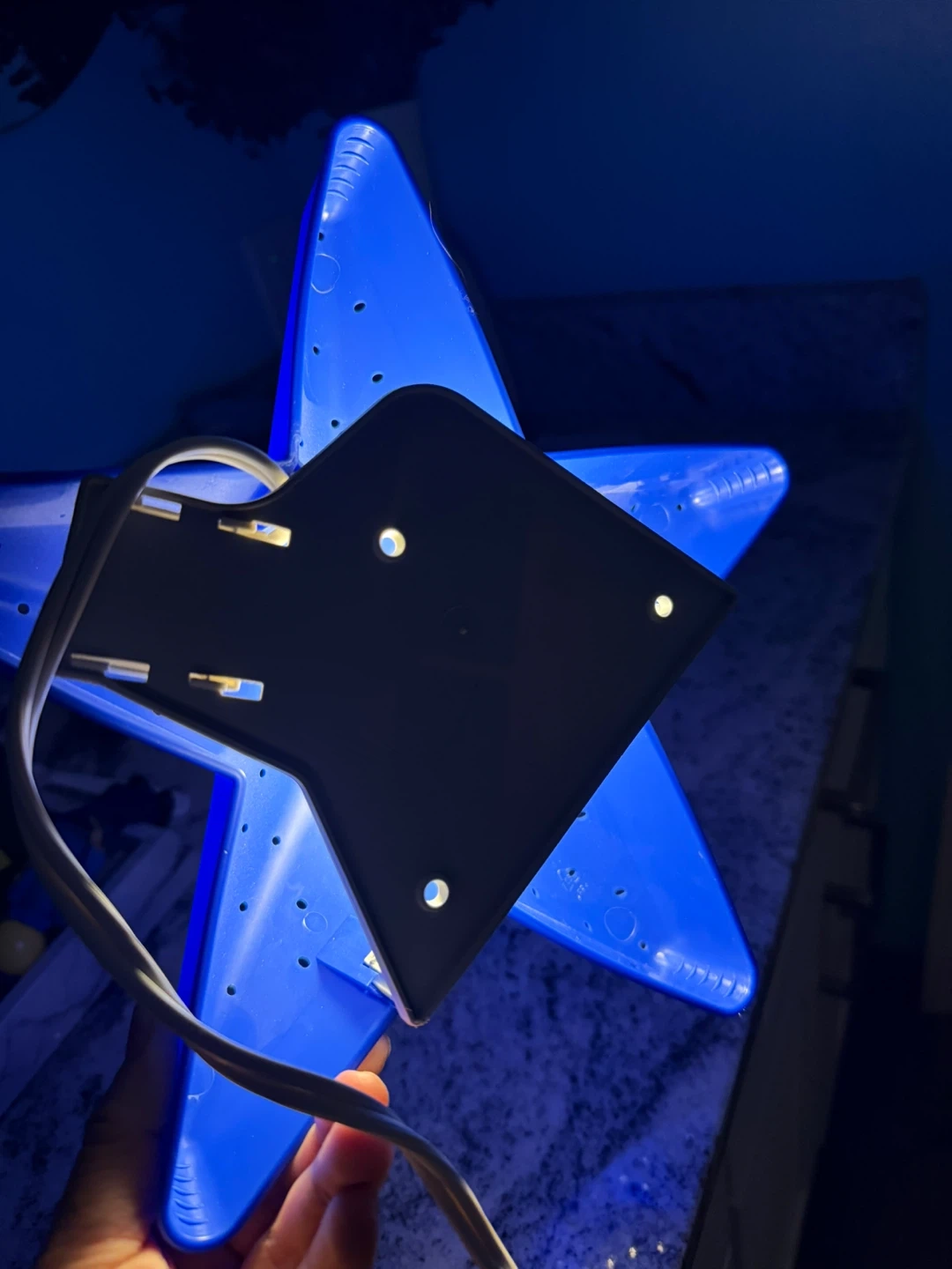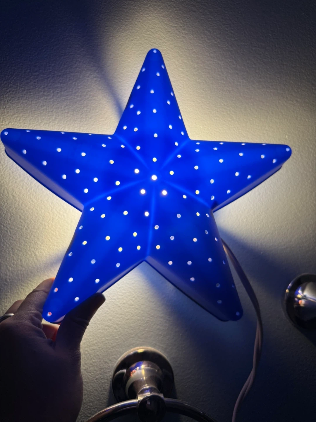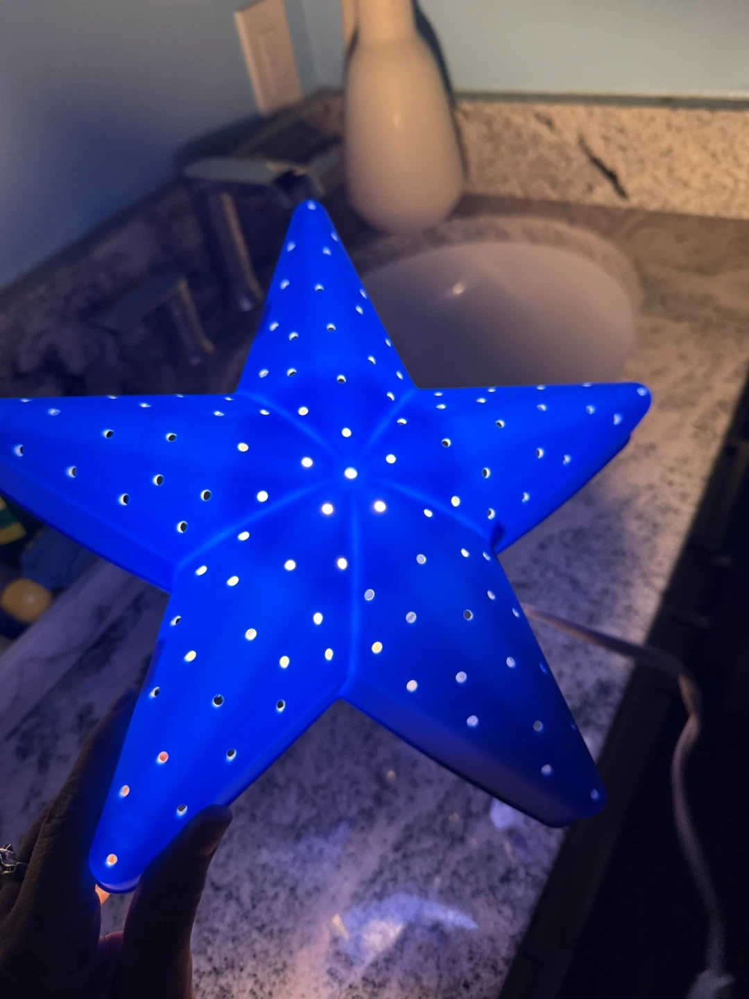 Here's a cute blue star-shaped night light! It's perfect for adding a touch of whimsy to any room. It emits a soft, comforting glow, making it ideal for a child's bedroom or as a decorative accent in your living space