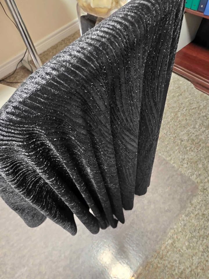 Luxurious Black Patterned Stretch Velour. 1.5 meters long. 60" wide. Polyester. True black. Smoke/pet free home. Pick up on west end of Peterborough. $10