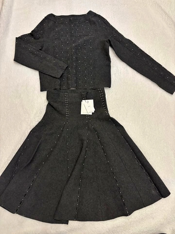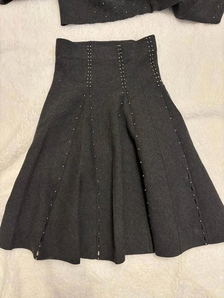 NWT Sandro Grey Holiday Set with beads(top size S, skirt size 0)