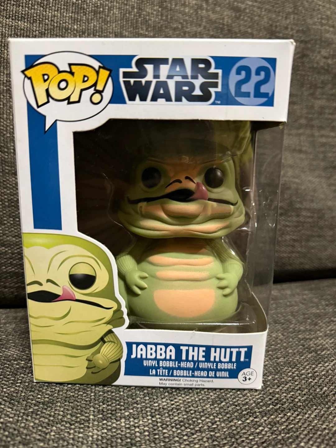 Selling a Funko Pop! Star Wars figure of Jabba the Hutt, number 22. It's a vinyl bobble-head and comes in its original box. Suitable for ages 3+