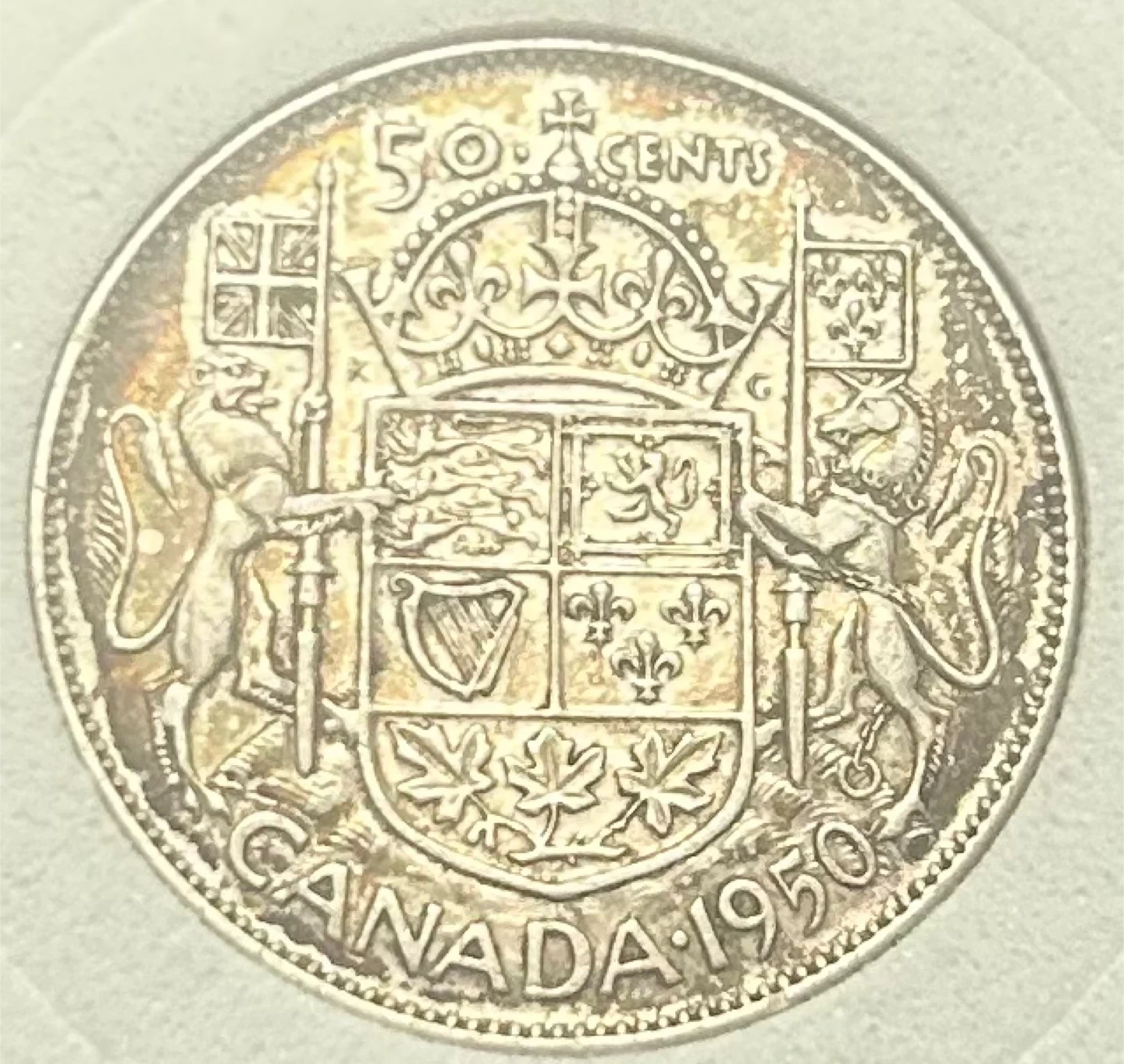 Canadian 50 Cent 1950 “No Design” Variety Rare!!