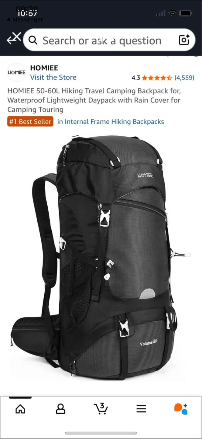 Selling a HOMIEE hiking backpack, perfect for your next adventure! It's a 50-60L capacity, so it can hold all your essentials. It's lightweight and waterproof, making it ideal for camping and touring. This backpack is a #1 Best Seller!