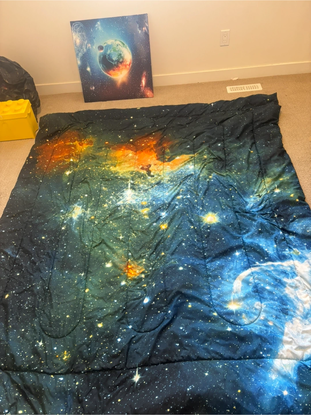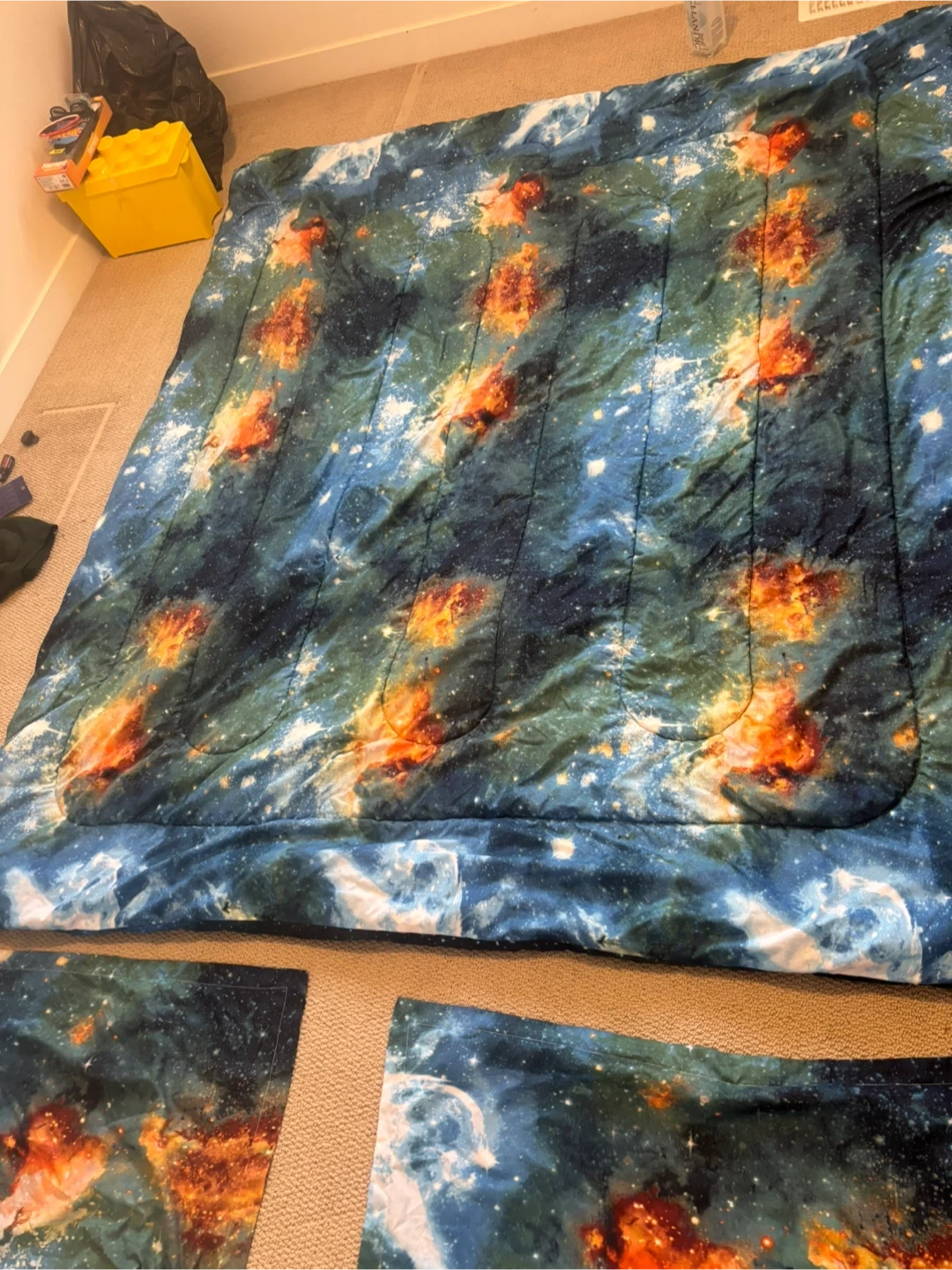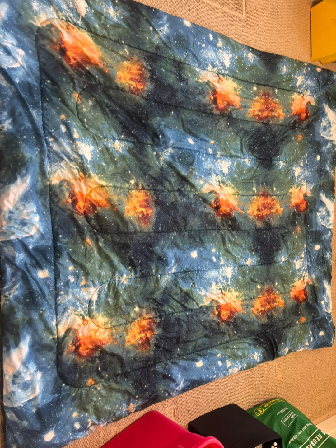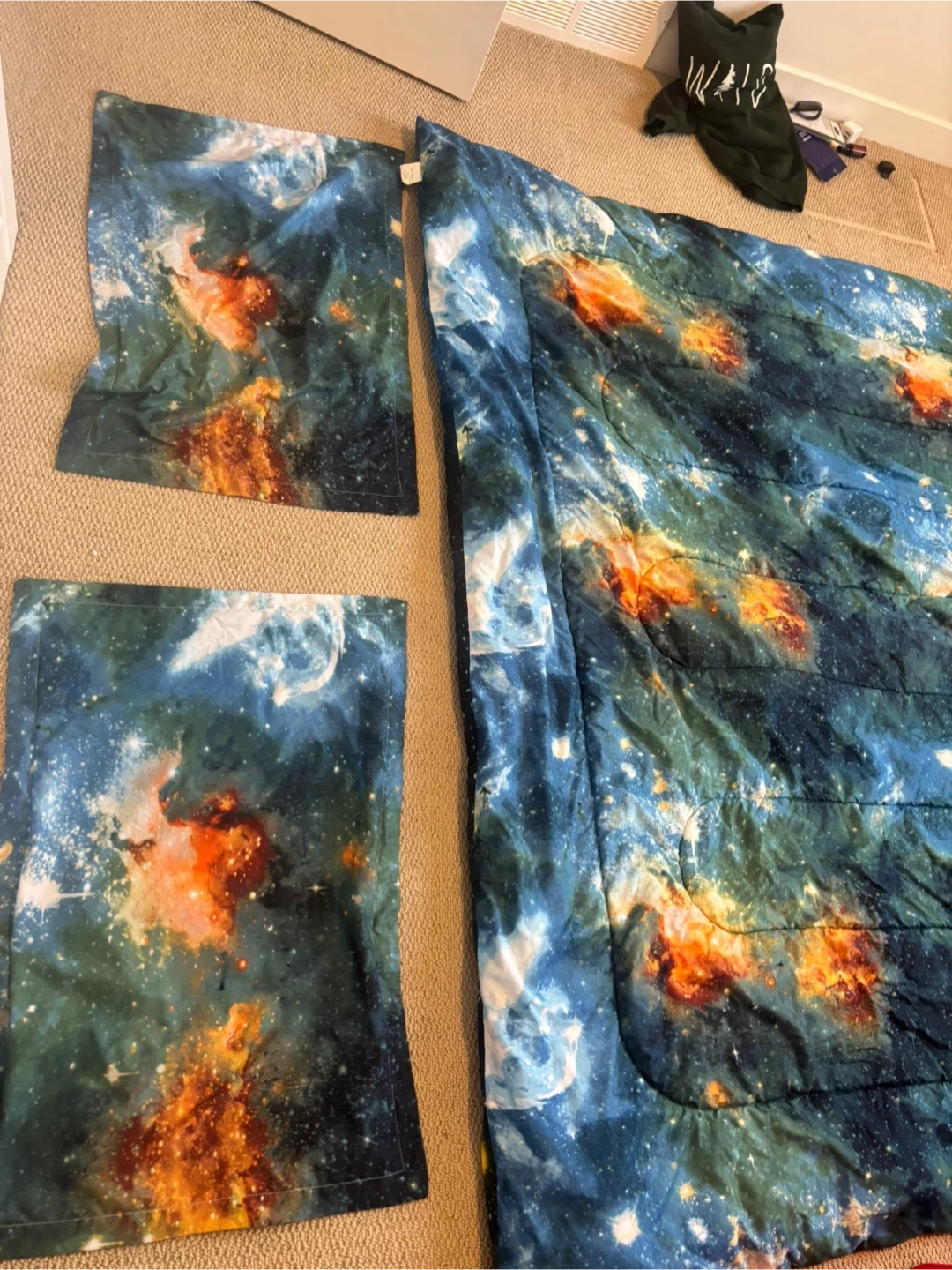 Here's a galaxy-themed comforter set! It has a really cool space print all over it. Perfect for anyone who loves astronomy or just wants a unique bedroom look