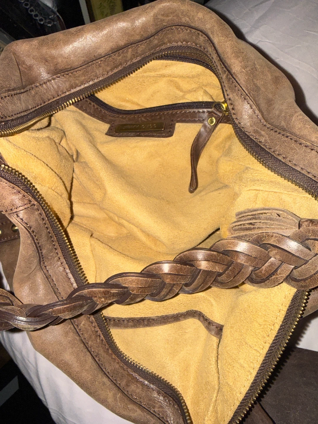 Buy & SellJimmy Choo Brown Leather Shoulder BagJimmy Choo Brown Leather Shoulder Bag$120Selling a Jimmy Choo shoulder bag in brown leather. It has a braided handle and is in good condition. Perfect for everyday use!ConditionGoodSizeMediumBrandJimmy ChooWHERE TO MEETCheck LocationView MapSELLERverifiedJenO'connor Parkview740 reviews0 chats·3 favorites·21 viewsSEND CHAT TO SELLERHi Jen! I’m interested in your listing.Hi Jen! I’m interested in your listing.Get the Karrot app to chatSign In to chat