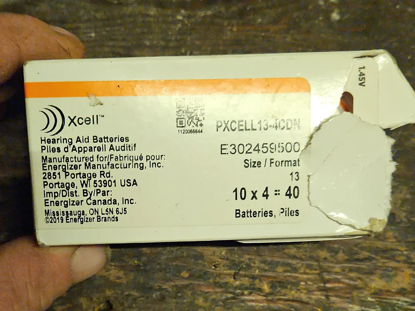 Selling a box of Xcell hearing aid batteries, size 13. The box has been opened, but the batteries inside are still new and unused. Contains 40 batteries total.