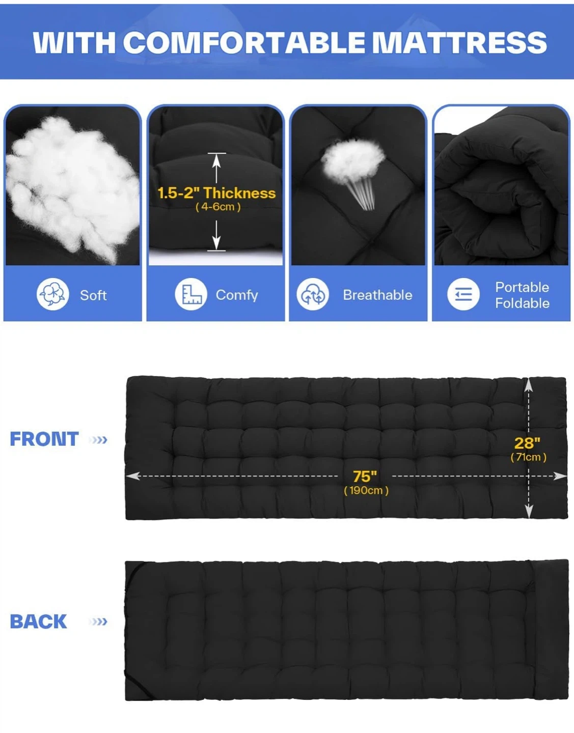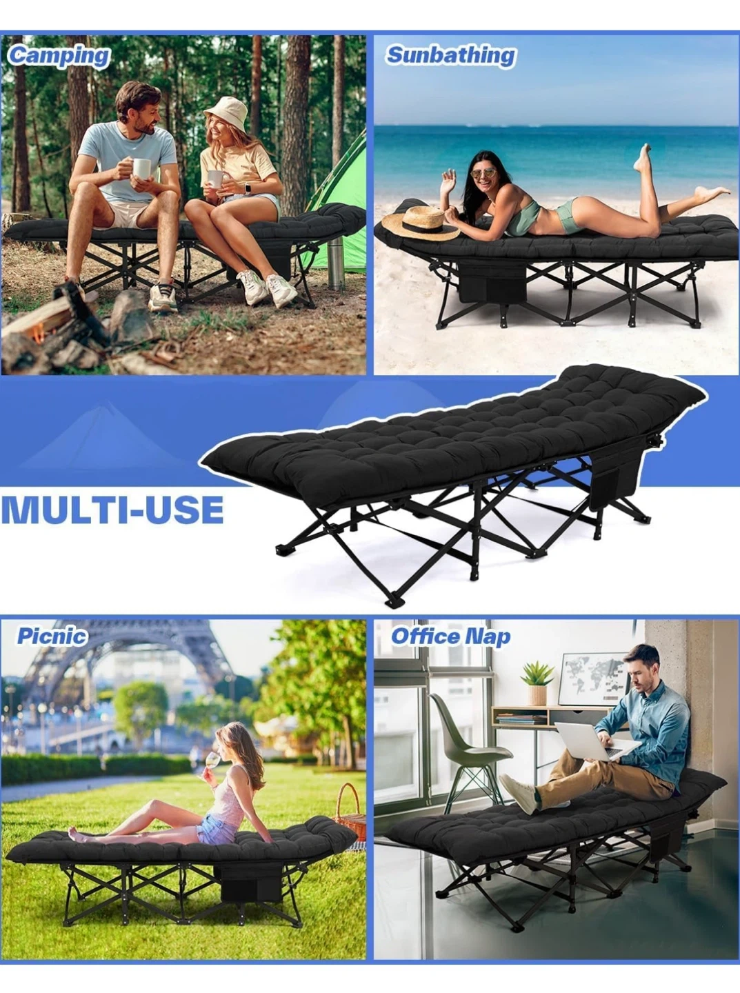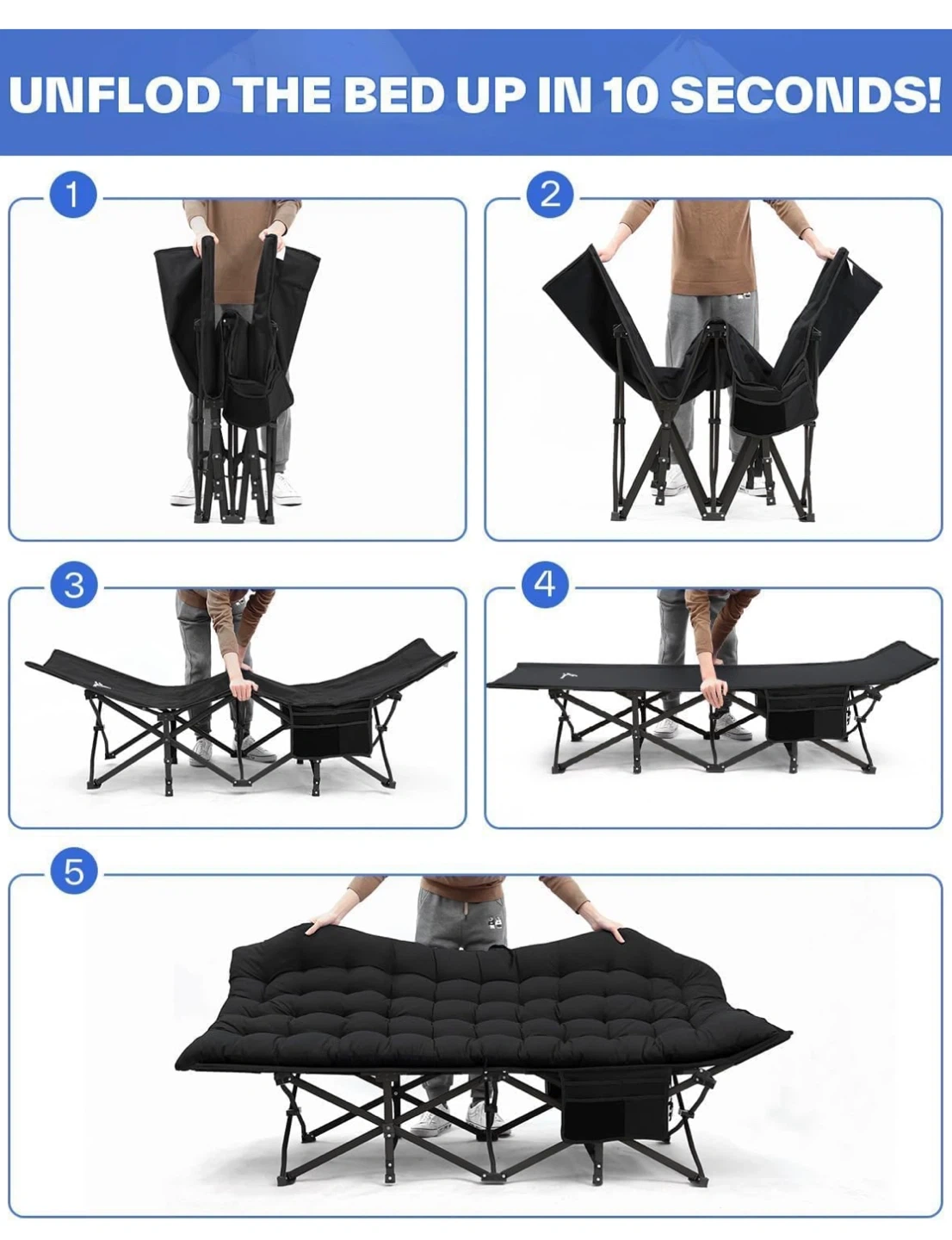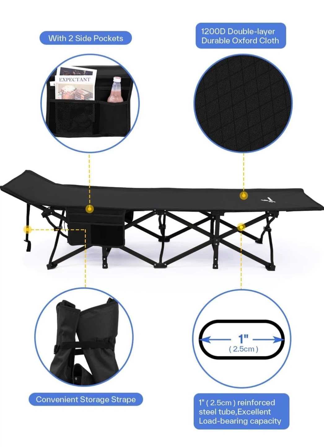 This Sportneer camping cot is brand new, still in its original packaging, offering a comfortable and convenient sleeping solution for outdoor adventures. The folding design makes it easy to transport and set up, perfect for camping trips or as a temporary bed for guests. It features a sturdy frame and durable fabric, ensuring a restful night's sleep in the great outdoors. It even includes a side organizer. I'm sure you'll sleep like a baby... a baby in a tent, that is!