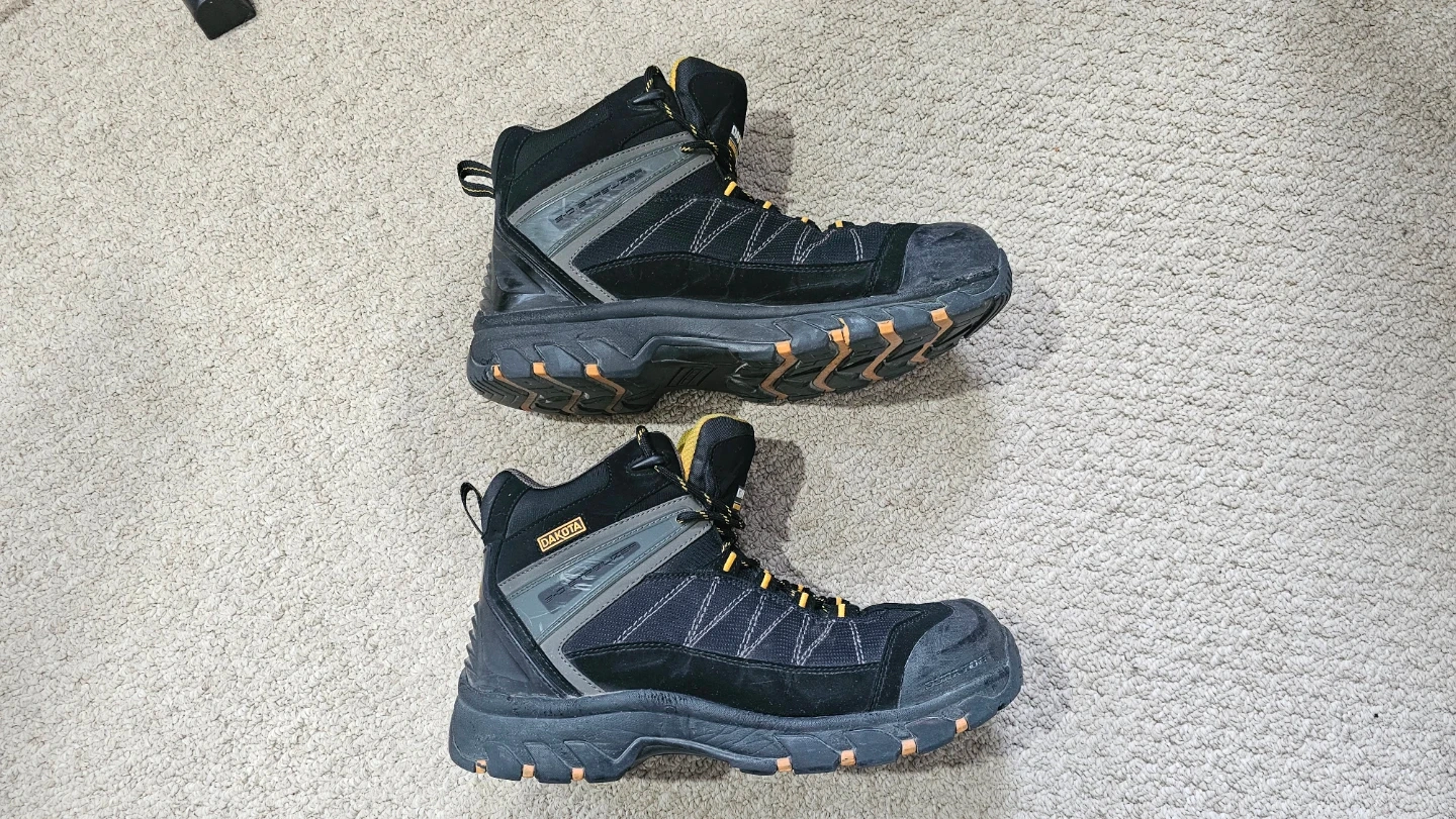 Selling a pair of Dakota work steel toe boots in black. They're in good condition and ready for a new owner! Perfect for any job site or outdoor activity. Size is 10.5 Wide.