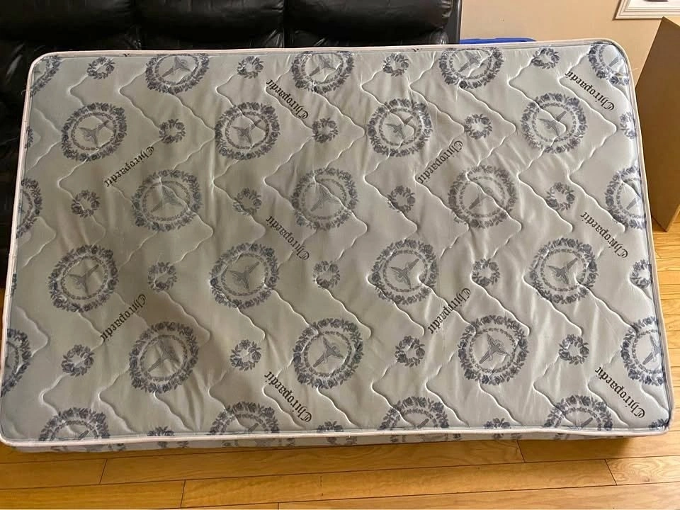 Selling a Full/Double-size Chiropedic mattress. It's in good condition and ready for a new home! The mattress features a patterned design with the brand name subtly incorporated throughout.