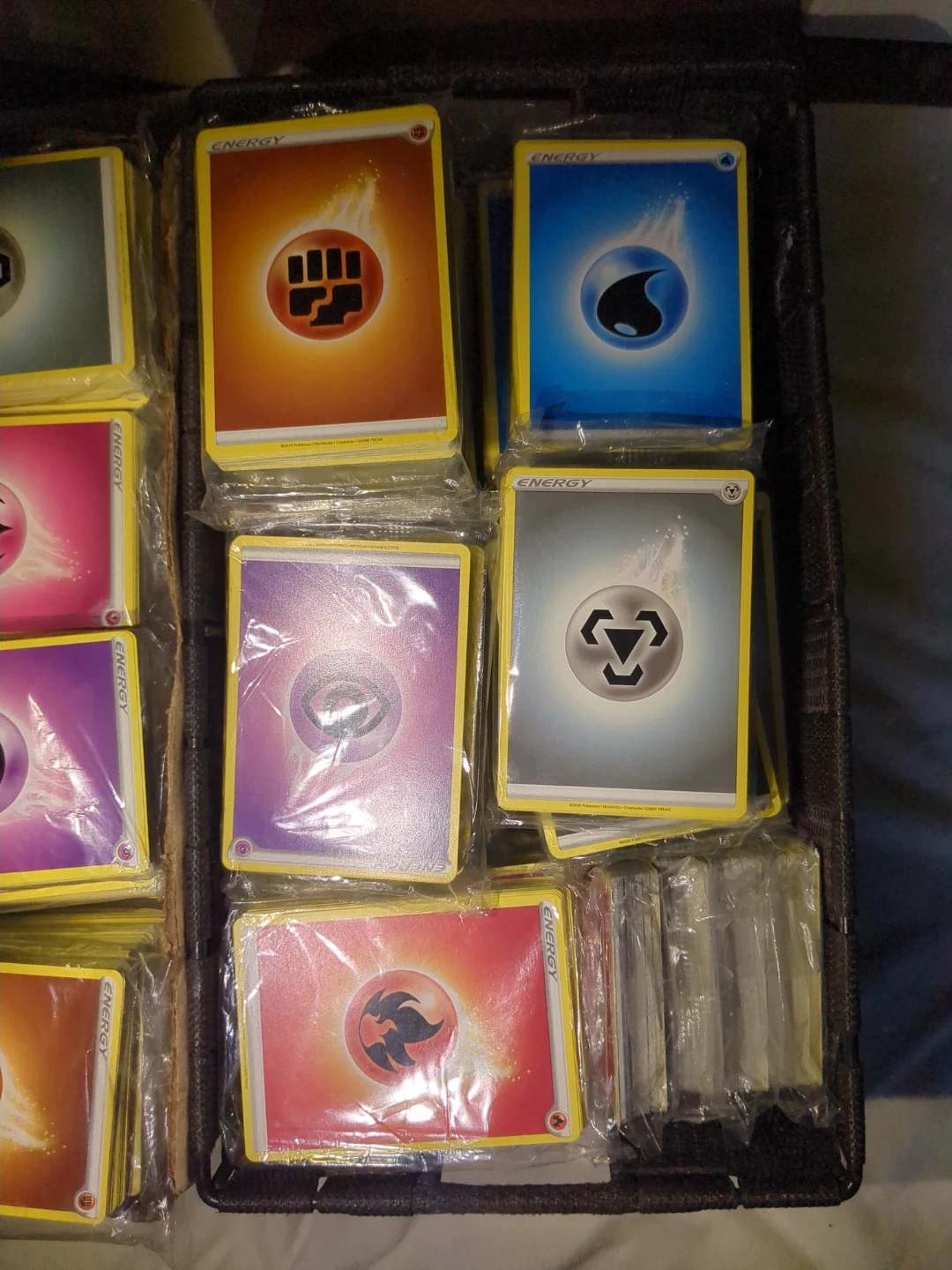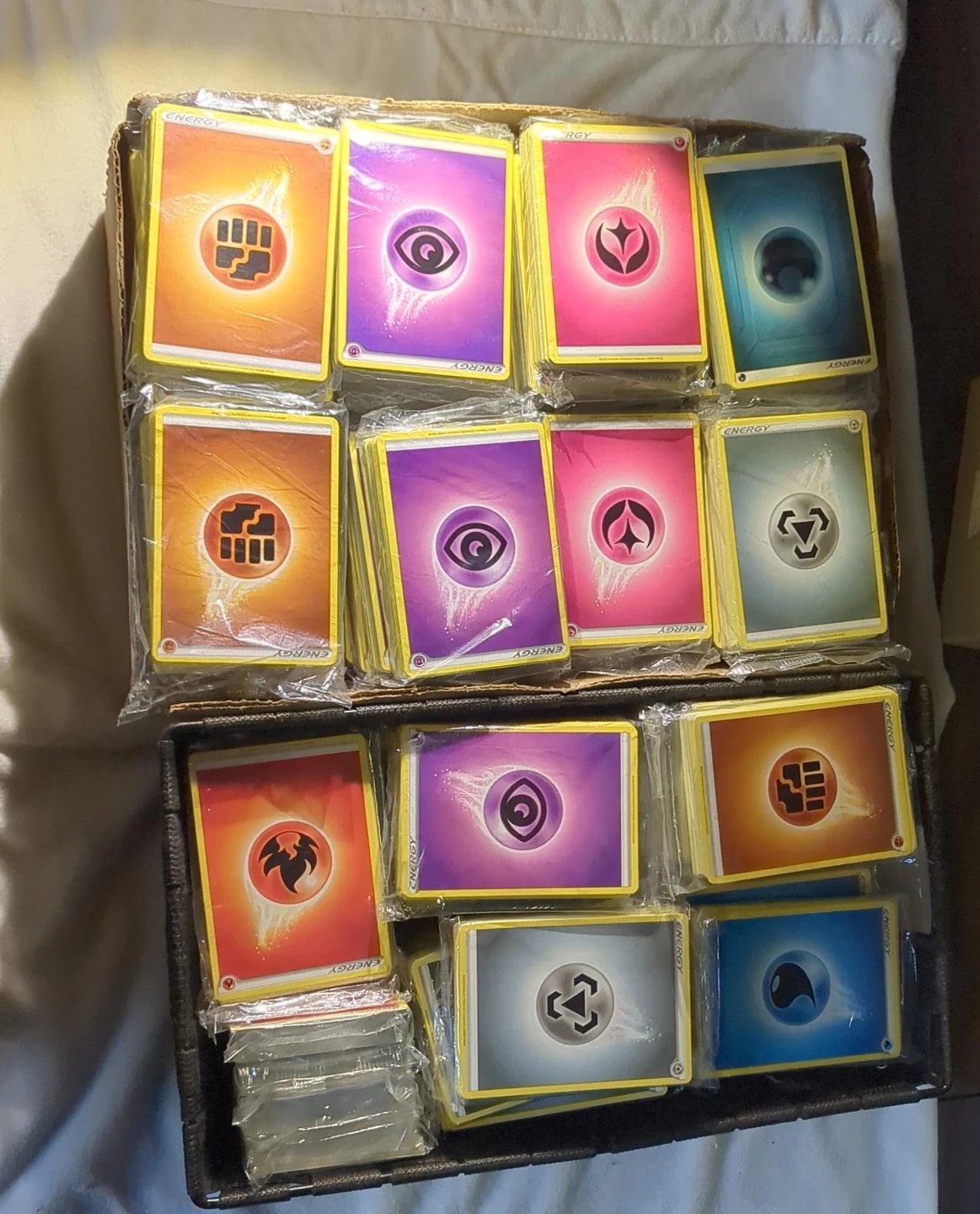 I have a collection of Pokemon energy cards for sale. They include various types such as Fire, Water, Psychic, Metal, and Fighting. Perfect for building your deck or expanding your collection!