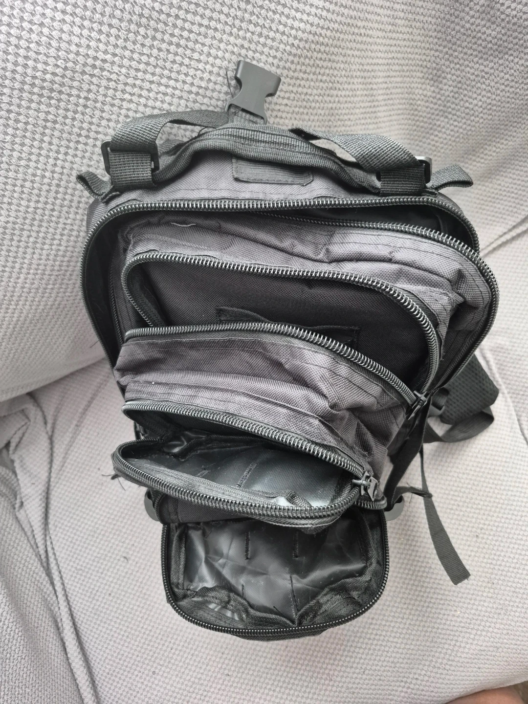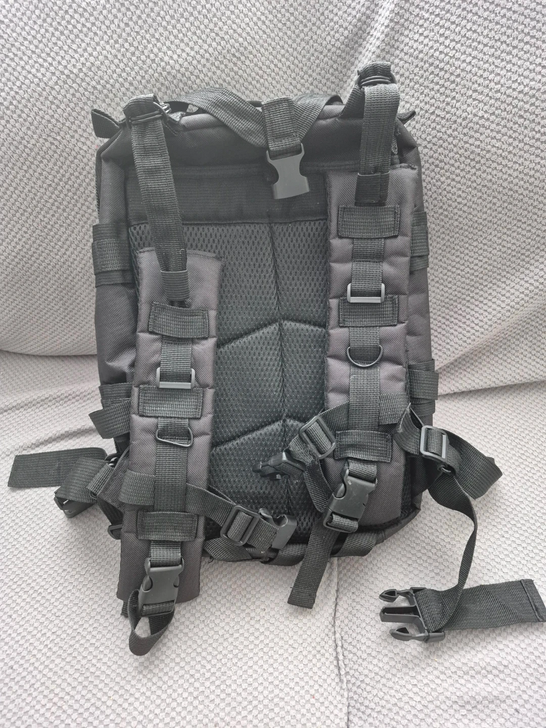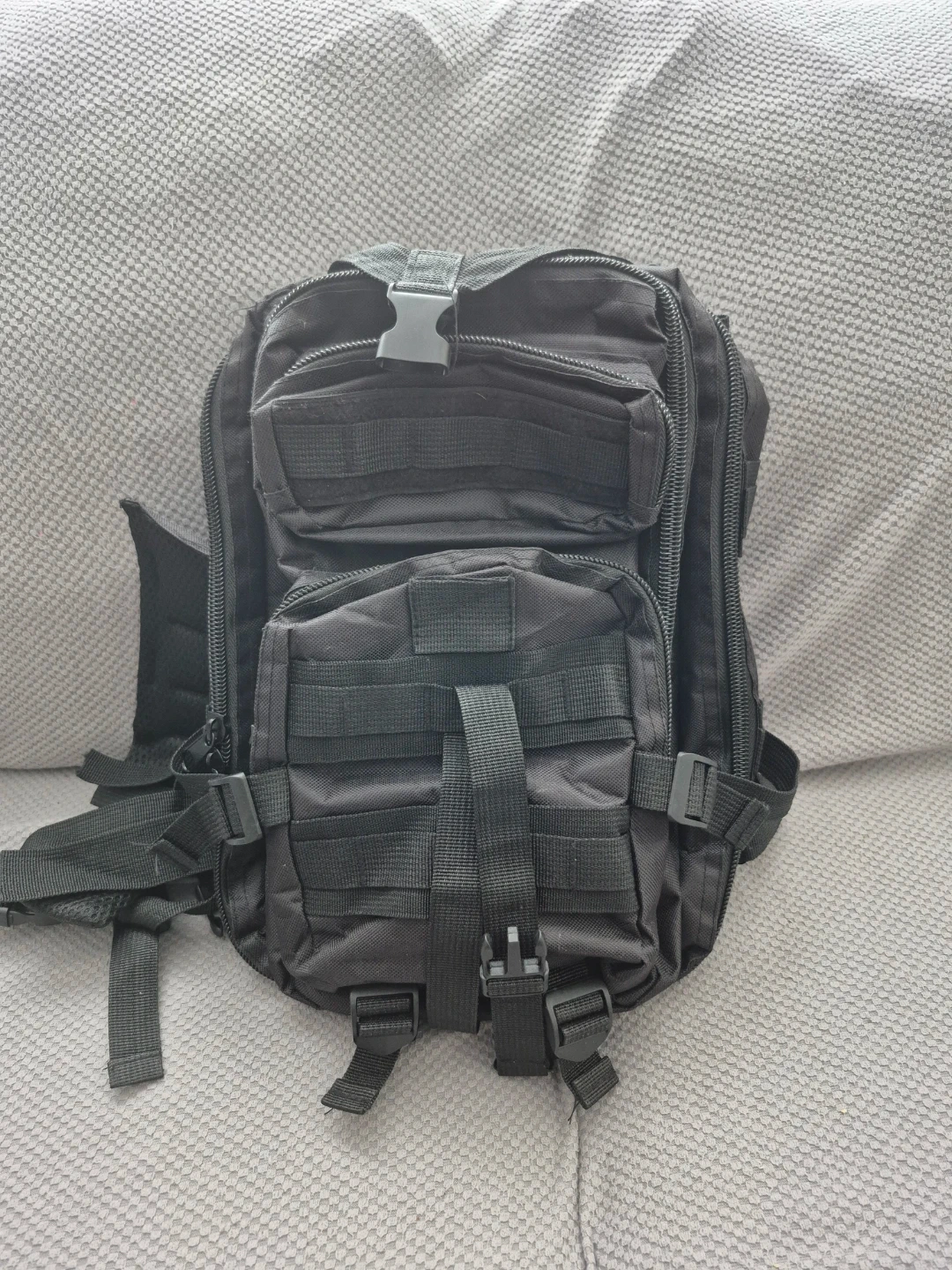 Selling a black tactical backpack with multiple compartments and adjustable straps. Its in good condition and great for camping, hikes or just general outing use!