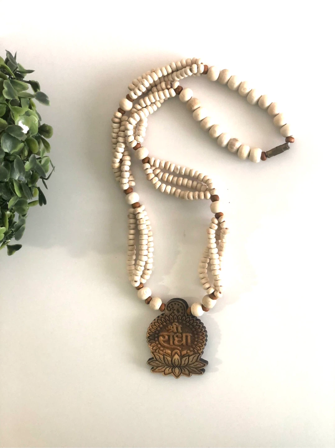 Handmade Wooden Bead Necklace with Shri Radha pendant