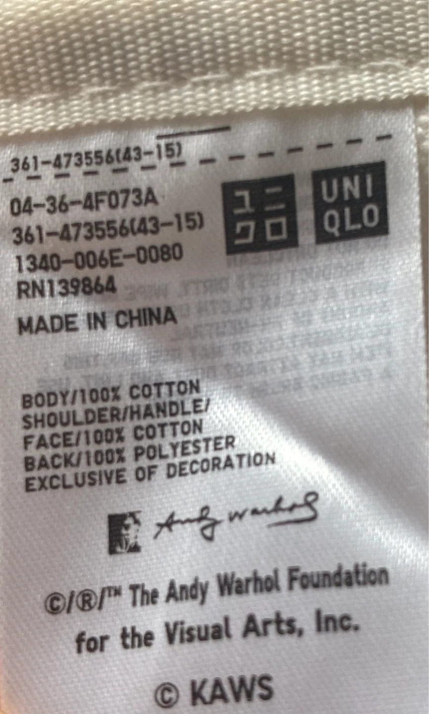 KAWS + WARHOL x UNIQLO 2WAY tote bag OFF WHITE Japan 2024