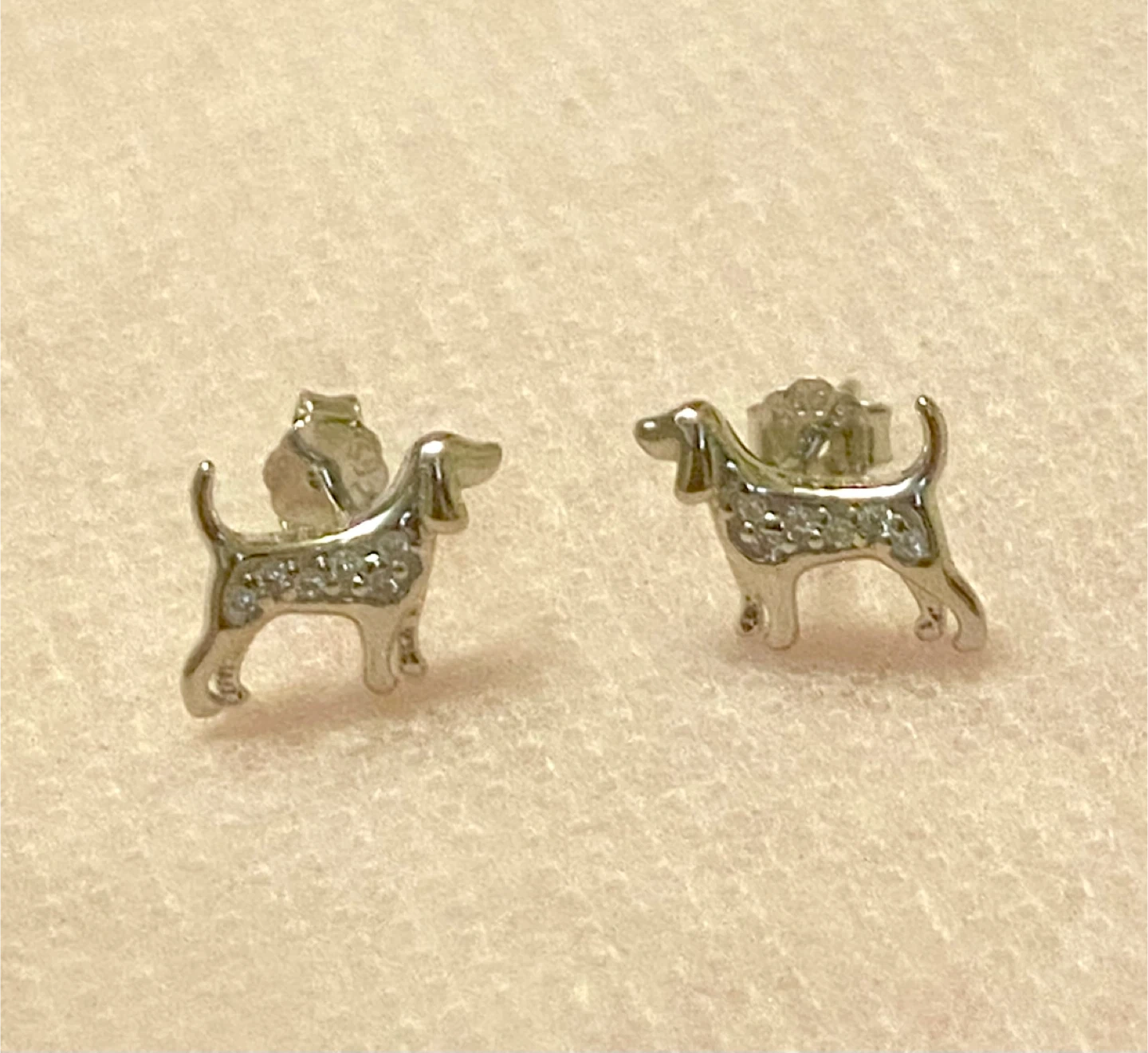 Cute dog-shaped stud earrings in a silver tone. Perfect for any dog lover!