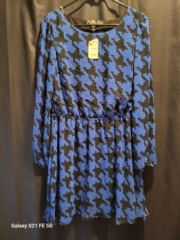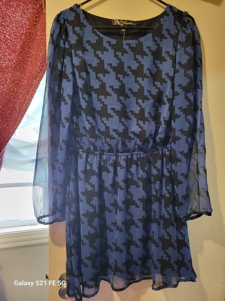 Blue/Black Houndstooth Dress – Size M (New With Ta