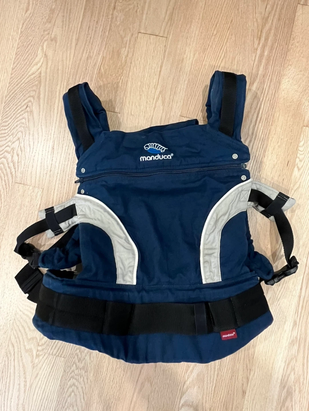 Gently used Manduca baby carrier (well known German brand), very light weight, in navy blue. Up to 20kg.