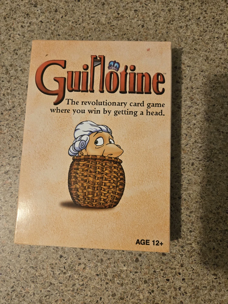Selling the Guillotine card game! It's a revolutionary card game where you win by getting a head. Recommended for ages 12 and up