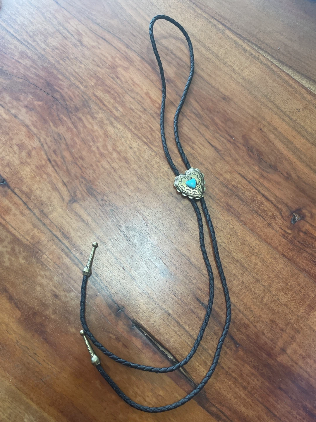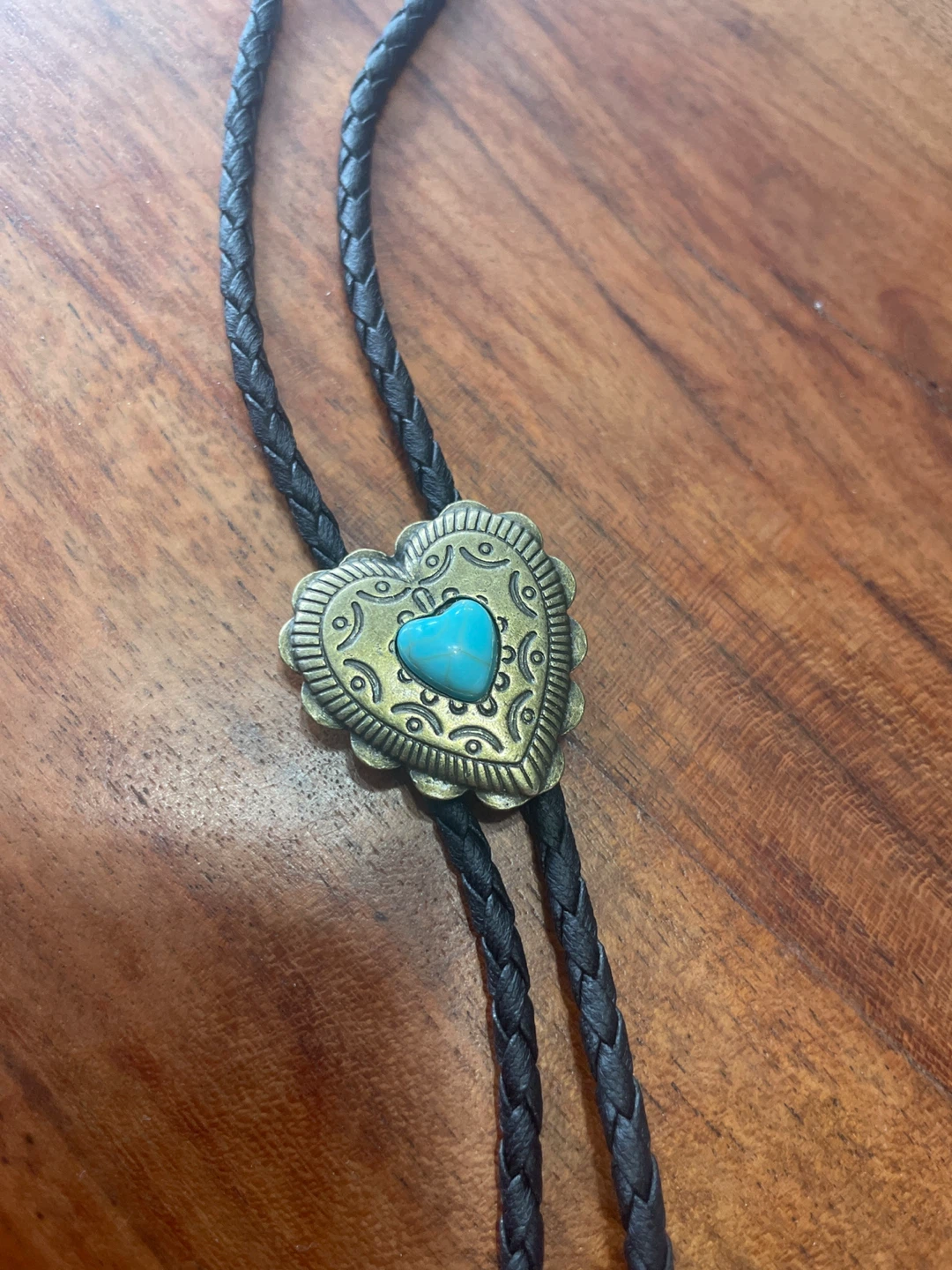 This is a cute bolo tie with a heart shaped turquoise stone.