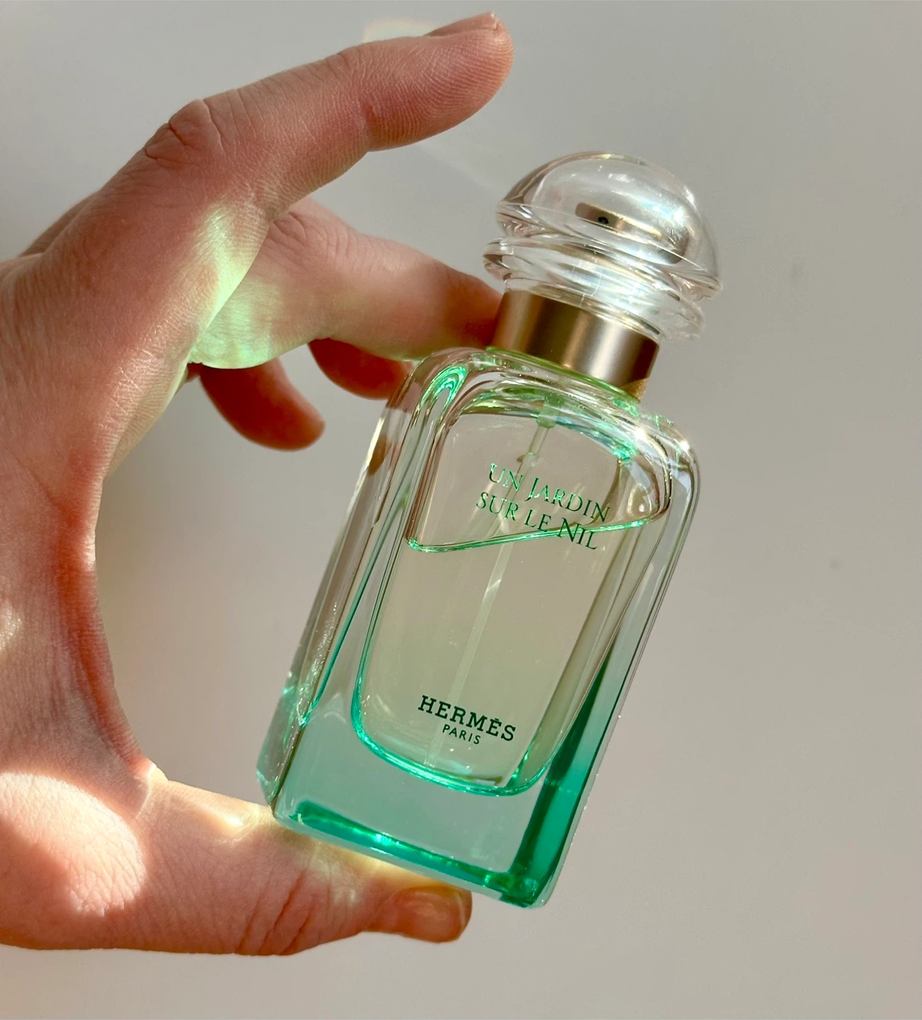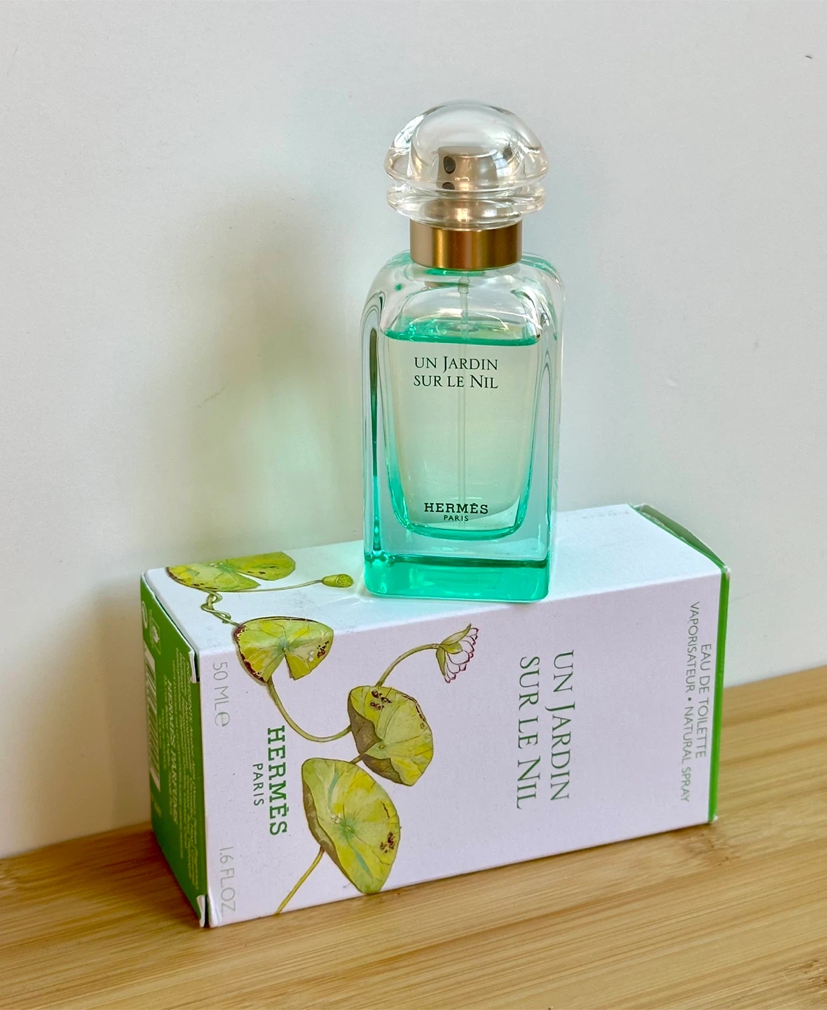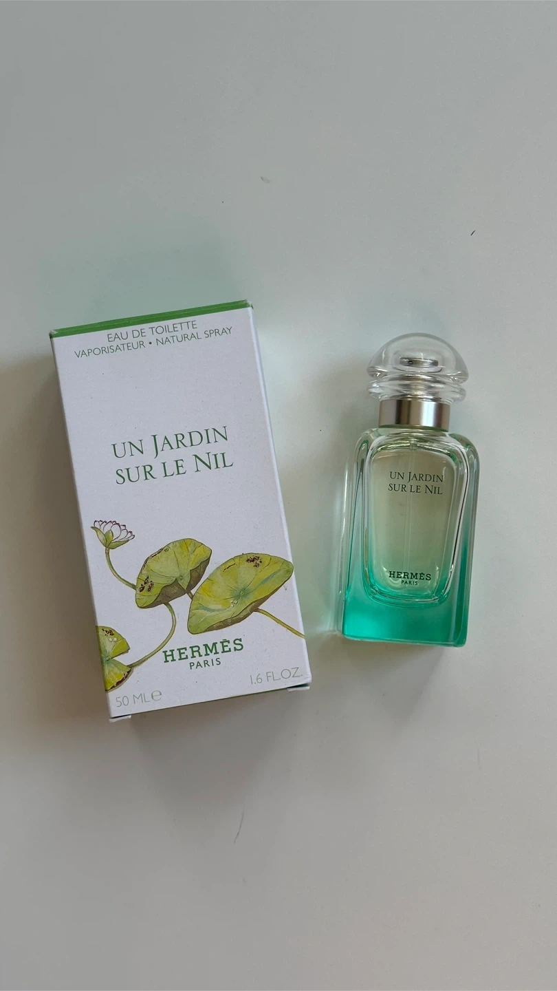 Selling a bottle of Hermès Un Jardin Sur Le Nil Eau de Toilette. It's a 1.6 fl oz (50 ml) bottle. The fragrance is a light, green refreshing scent. The box is included! Gently used and stored properly in a smoke free household.