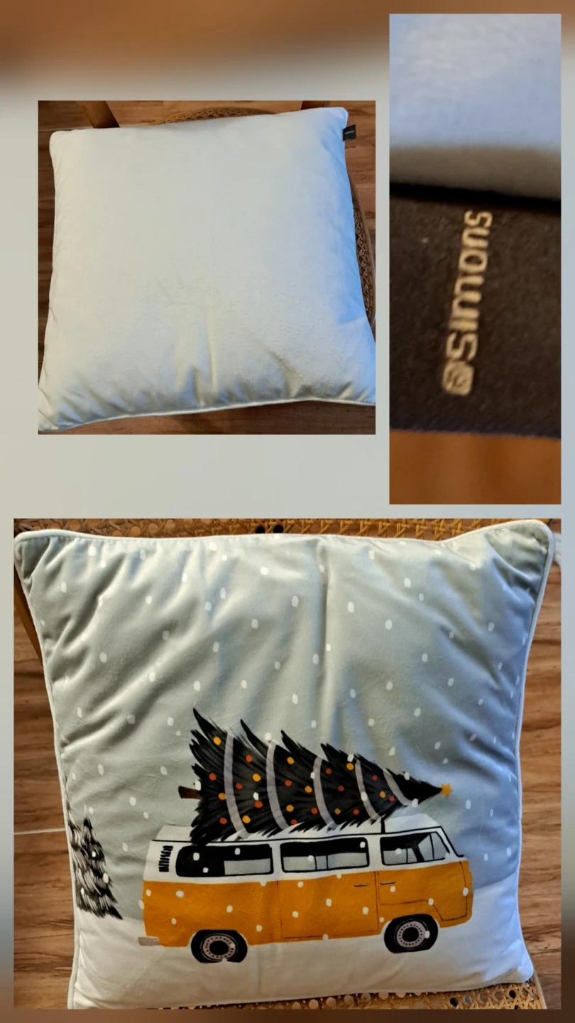 Add a festive touch to your home with this adorable decorative pillow from Simons! It features a cute design of a Christmas tree on top of a van. Perfect for adding a cozy and cheerful vibe to any room