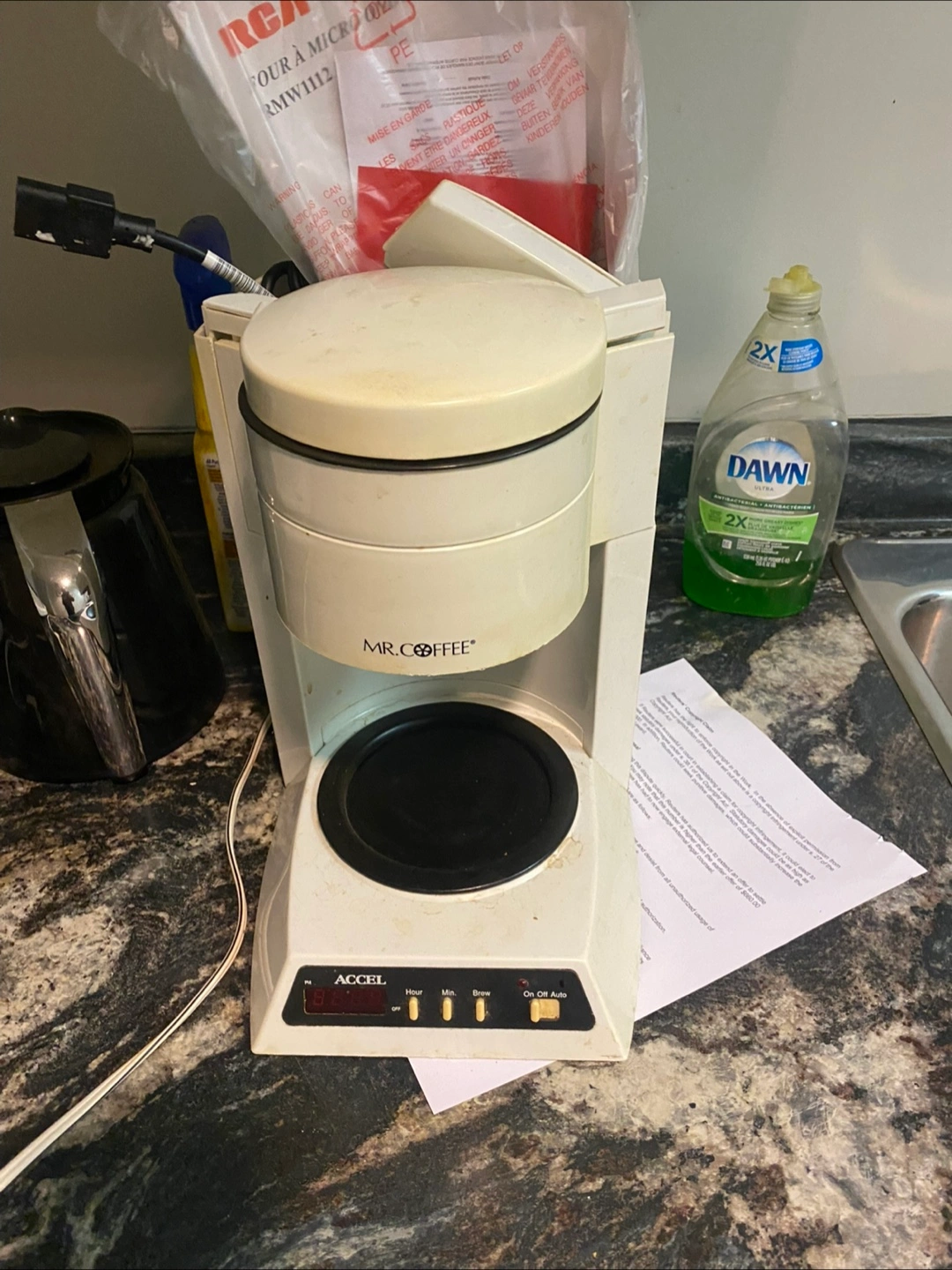 Selling a Mr. Coffee ACCEL coffee maker. It's in used condition, but still works great! Perfect for brewing a quick cup in the morning