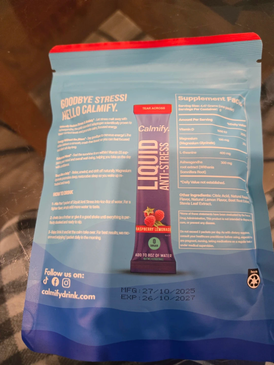 I have some Calmify! Liquid Anti-Stress in Raspberry Lemonade flavour.